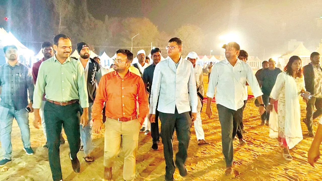 శ్రీకాకుళం కలెక్టరేట్, జనవరి 19(ఆంధ్రజ్యోతి): రథ సప్తమి వేడుకల కోసం నగరంలో జరుగుతున్న ఏర్పాట్లు పకడ్బందీగా ఉండాలని కలెక్టర్ స్వప్నిల్ దినకర్ పుండ్క ర్ అధికారులను ఆదేశించారు. సోమవారం రాత్రి జేసీ ఫర్మాన్ అహ్మద్ఖాన్తో కలిసి కోడిరామ్మూర్తి స్టేడియం, ప్రభుత్వ పురుషుల కళాశాల మైదానాల్లో జరుగుతున్న ఏర్పాట్లను పరిశీలించారు. ఈ సందర్భంగా కలెక్టర్ మా ట్లాడుతూ.. కేఆర్ స్టేడియంలో నిర్వ హించే సాంస్కృతిక కార్యక్రమాలకు వేల సంఖ్యలో ప్రజలు వచ్చే అవకాశం ఉందని, గ్యాలరీలు, సిట్టింగ్ ఏర్పాట్లు పటిష్టంగా ఉండా లన్నారు. చిన్నారుల కోసం స్టేడియంలో కిడ్స్ ఆటస్థలం, అమ్యూజ్మెంట్ పార్కులను పరిశీలించారు. కార్యక్రమా ల వద్ద ఎక్కడా తోపులాటలు జరుగకుండా చూడాలని ఆదేశించారు. డ్వాక్రా బజార్, ఫుడ్ ఫెస్టివల్ స్టాళ్లను పరి శీలించి పలు సూచనలు చేశారు. సందర్శకు లకు ఎటు వంటి ఇబ్బంది కలుగకుండా విశాలమైన దారులు ఉండే లా చూడాలన్నారు. మంగళవారం నుంచి ప్రారంభం కానున్న ‘హాట్ ఎయిర్ బెలూన్’ పాయింట్ వద్ద భద్రతా చర్యలు తీసుకోవాలని ఆదేశించారు. జేసీ మాట్లాడుతూ ఉత్సవాల నిర్వహణలో అన్ని శాఖల అధికారులు సమ న్వయంతో పనిచేయాలన్నారు. పారిశుధ్యం, తాగునీరు, నిరంతర విద్యుత్ సరఫరా ఉండాలన్నారు. ట్రాఫిక్ను క్రమబద్ధీకరించాలని సూచించారు.