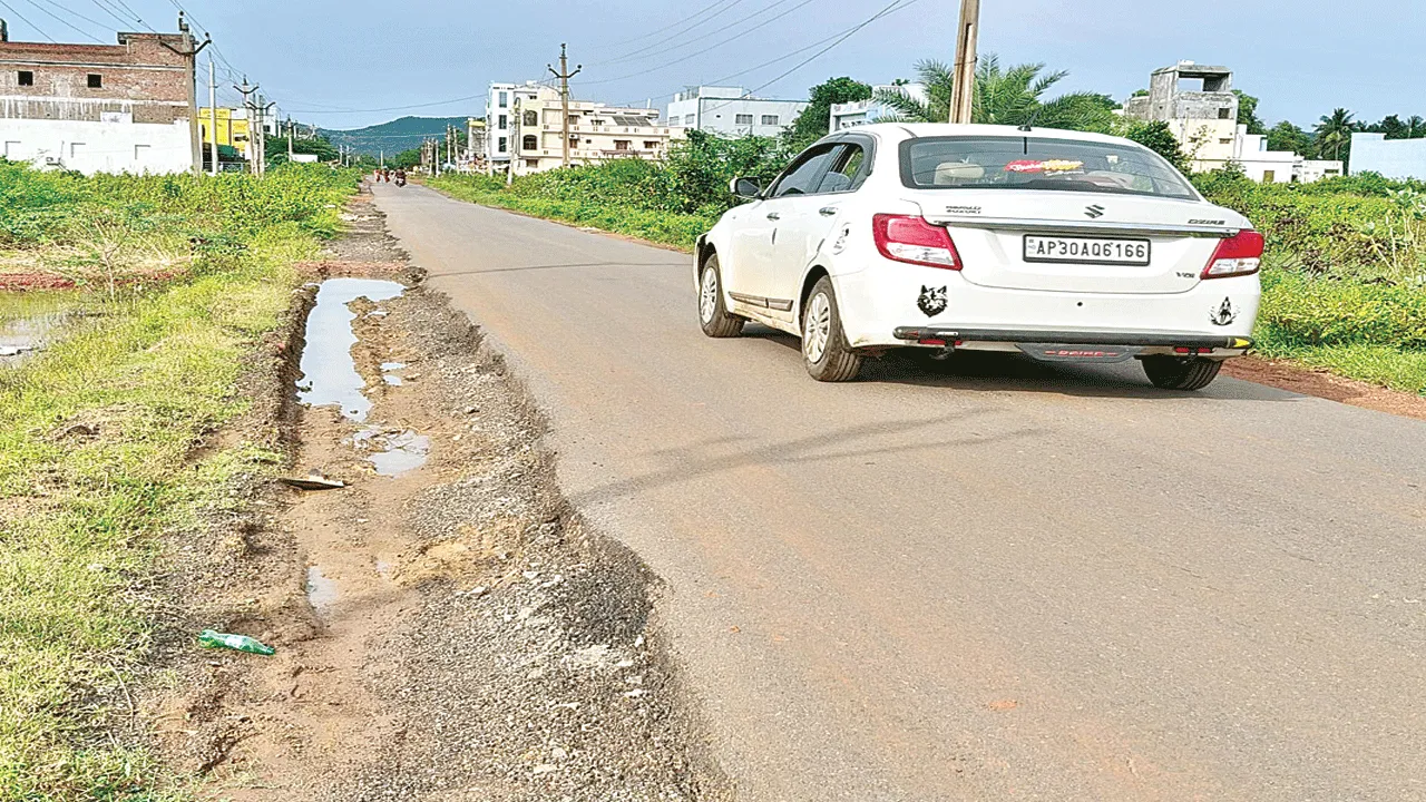 - కోతకు గురైన పూండి రోడ్డు