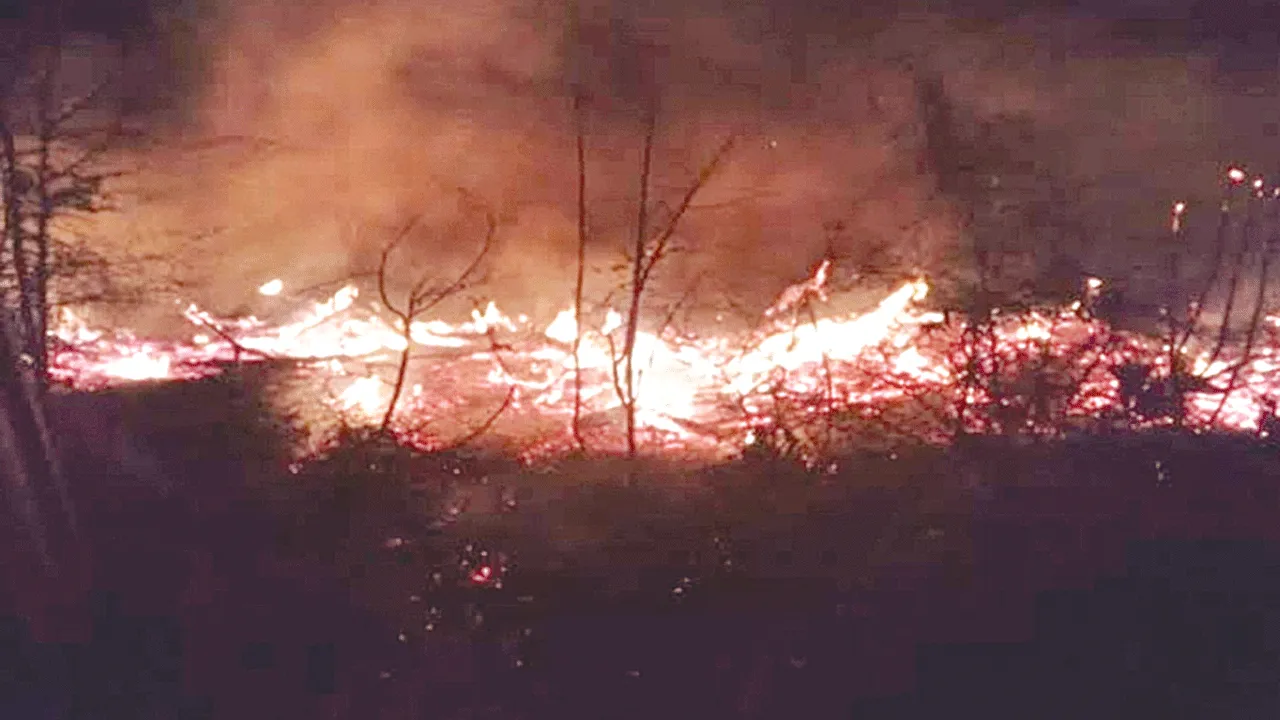 పోడు వ్యవసాయంలో భాగంగా మంట పెడుతున్న వైనం