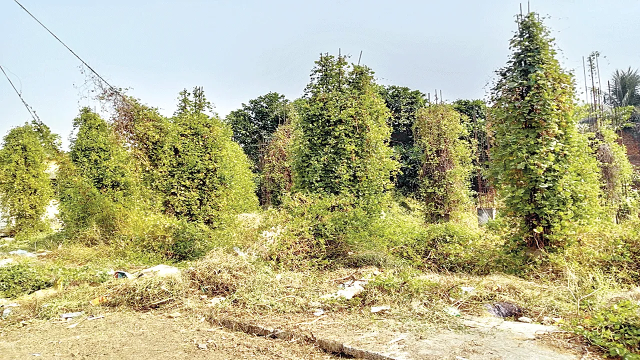 పిచ్చిమొక్కలతో నిండి.. పనులు నిలిచిపోయి