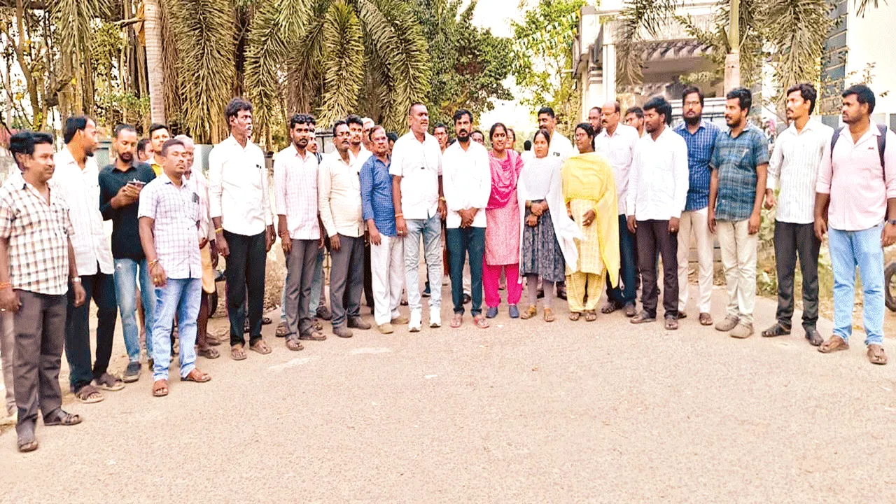 పోలీసు స్టేషన్ ఎదుట రెవెన్యూ ఉద్యోగుల నిరసన