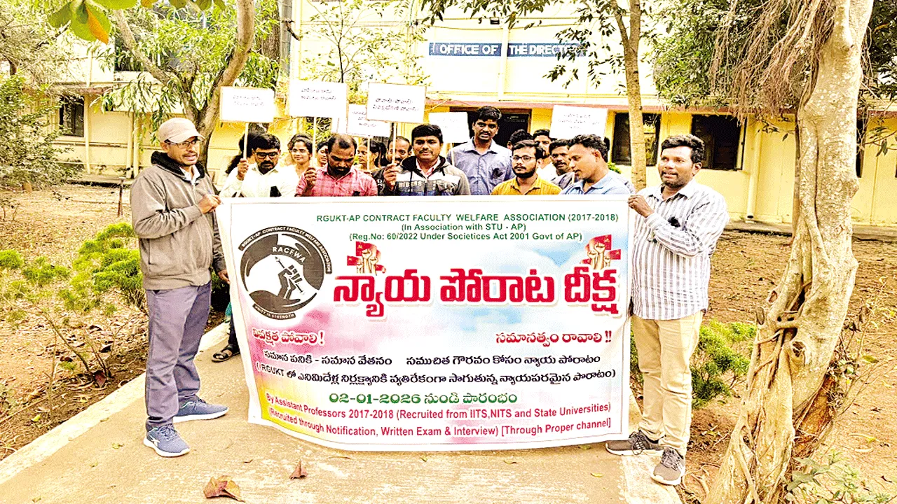 కాంట్రాక్ట్ అసిస్టెంట్ ప్రొఫెసర్ల ఆందోళన