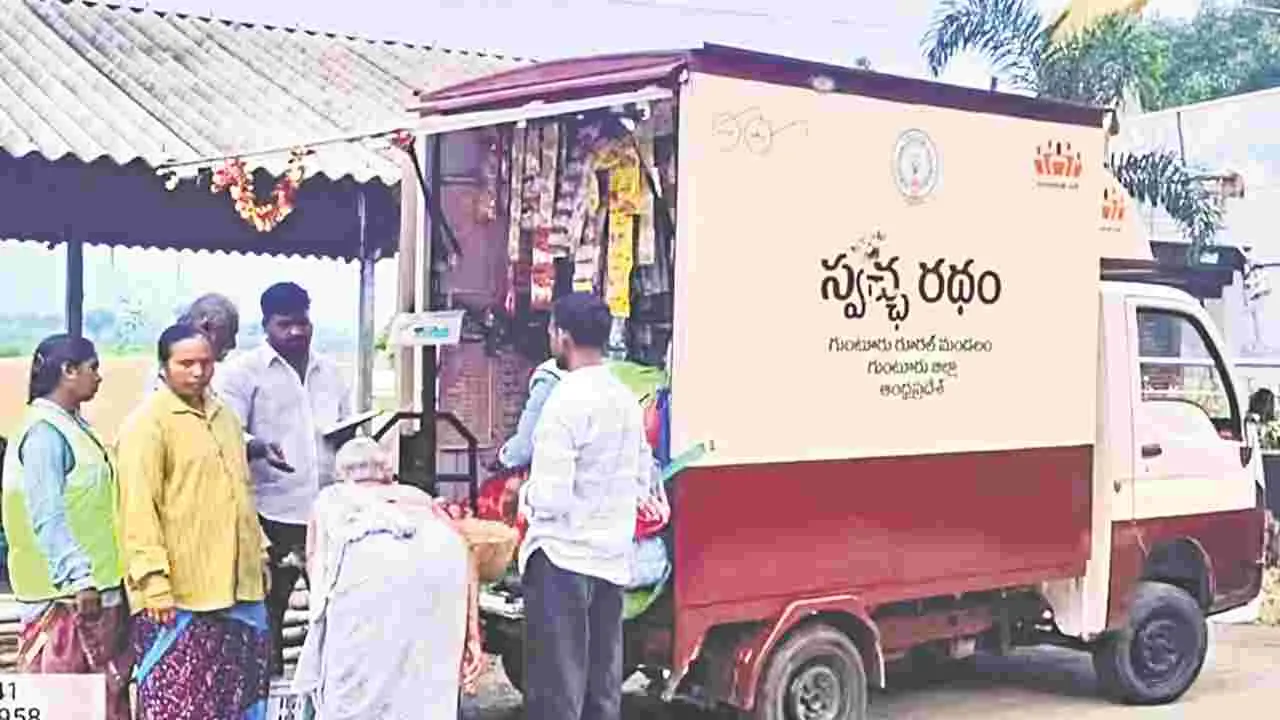 గ్రామీణ ప్రాంతాల్లోని ఇళ్లలో పోగయ్యే వ్యర్థాలను సంపదగా మార్చే ఉద్దేశంతో పంచాయతీరాజ్, గ్రామీణాభివృద్ధి శాఖ చేపట్టిన వినూత్న ప్రాజెక్టు సూపర్ హిట్ అయింది! ‘స్వచ్ఛ రథం’ పేరుతో 434 వాహనాల ద్వారా ఇళ్లలో టన్నుల కొద్దీ నిరుపయోగంగా ఉన్న ప్లాస్టిక్, ఇతర రకాల వస్తువుల ఘన వ్యర్థాలను సేకరిస్తున్నారు. పాత ఇనుము, పేపర్లు, పుస్తకాలు, అట్టపెట్టెలు, ప్లాస్టిక్ బాటిళ్లు, స్టీల్ వస్తువులను సేకరించి.. బదులుగా గ్రామీణులకు పప్పు, ఉప్పు, చింతపండు, సబ్బులు వంటి ఇతర నిత్యావసర వసువుల అందజేత విజయవంతంగా సాగుతోంది. ఉప ముఖ్యమంత్రి పవన్ కల్యాణ్ ఆదేశాలతో గుంటూరు రూరల్ మండలం లాలుపురంలో పైలట్ ప్రాజెక్టుగా ప్రారంభమైన ఈ కార్యక్రమం ఇప్పుడు చాలా గ్రామాలకు విస్తరించింది. ఆర్నెల్ల కిందట పంచాయతీరాజ్, గ్రామీణాభివృద్ధి శాఖ కమిషనర్ కృష్ణతేజ గ్రామీణ ప్రాంతాల్లో పారిశుధ్యం పెరగడంతో పాటు గ్రామీణులకు అంతో ఇంతో ఆదాయం కల్పించవచ్చని ఈ ‘స్వర్ణ రథం’ అనే కాన్సెప్ట్ ను అమల్లోకి తెచ్చారు. ‘మీ ఇంట్లో ఏ వస్తువూ వృథా కాదు. అవసరం లేదని పారవేసే ప్రతి వస్తువుకూ విలువు ఉంది. ఎంతో కొంత ఆదాయం వస్తుంది’ అనే ప్రచారం చేశారు. ఇది పూర్వ కాలంలో గ్రామీణ ప్రాంతాల్లో ఉండే వస్తు మార్పిడి విధానానికి అనుగుణంగా ఉంటుంది.