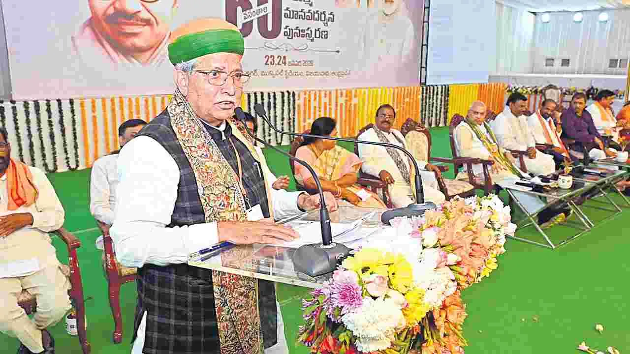 అమరావతి, జనవరి 24(ఆంధ్రజ్యోతి): స్వదేశీ విధానం, వికేంద్రీకరణ, అంత్యోదయ భావనలే దేశ ప్రగతికి మార్గదర్శకాలని ఏకాత్మ మానవ దర్శన సభలో మేధావులు, వక్తలు అభిప్రాయపడ్డారు. దేశానికి సంబంధించిన అన్ని రంగాల్లోనూ భారతీయత ప్రతిబింబించాలని, మన సంస్కృతి, సామాజిక, ఆర్థిక, ఆధ్యాత్మిక అభివృద్ధి ఏకాత్మ మానవతా వాదంతో సమతుల్యం అవుతుందని పేర్కొన్నారు. విదేశీ ఉత్పత్తులపై ఆధారపడకుండా స్వదేశీ తయారీ పెంచడంతో పాటు వినియోగం పెరగాలని ఆకాంక్షించారు. విజయవాడలో 1965 జనవరి చివరి వారంలో పండిట్ దీన్ దయాళ్ ఉపాధ్యాయ నేతృత్వంలో జరిగిన ఏకాత్మ మానవతా సదస్సులో భావి భారతావనిలో ఆర్థిక, రక్షణ, అందరికీ ఆరోగ్యం, ఆర్టికల్ 370 రద్దు, మహిళా సాధికారత, అంత్యోదయ ఇతర పాలనాపరమైన విధానాలు ఎలా ఉండాలో తీర్మానాలు చేశారు. ఆ సదస్సు జరిగి 60ఏళ్లు పూర్తయిన సందర్భాన్ని పురస్కరించుకుని ఏపీ బీజేపీ పునఃస్మరణ సదస్సు నిర్వహించింది. ఈ కార్యక్రమంలో ముఖ్య అతిథిగా పాల్గొన్న కేంద్ర న్యాయశాఖ మంత్రి అర్జున్ రామ్ మేఘ్వాల్ మాట్లాడుతూ.. భారతీయ జనసంఘ్ బలోపేతానికి 1965లో విజయవాడలో పునాది పడిందని, బెజవాడను బీజేపీ ఎన్నటికీ మరిచిపోదని అన్నారు. ఆత్మ, బుద్ధి, మనసు, శరీరాల సమతుల్యతే ఏకాత్మ సిద్ధాంతమని వివరించారు.