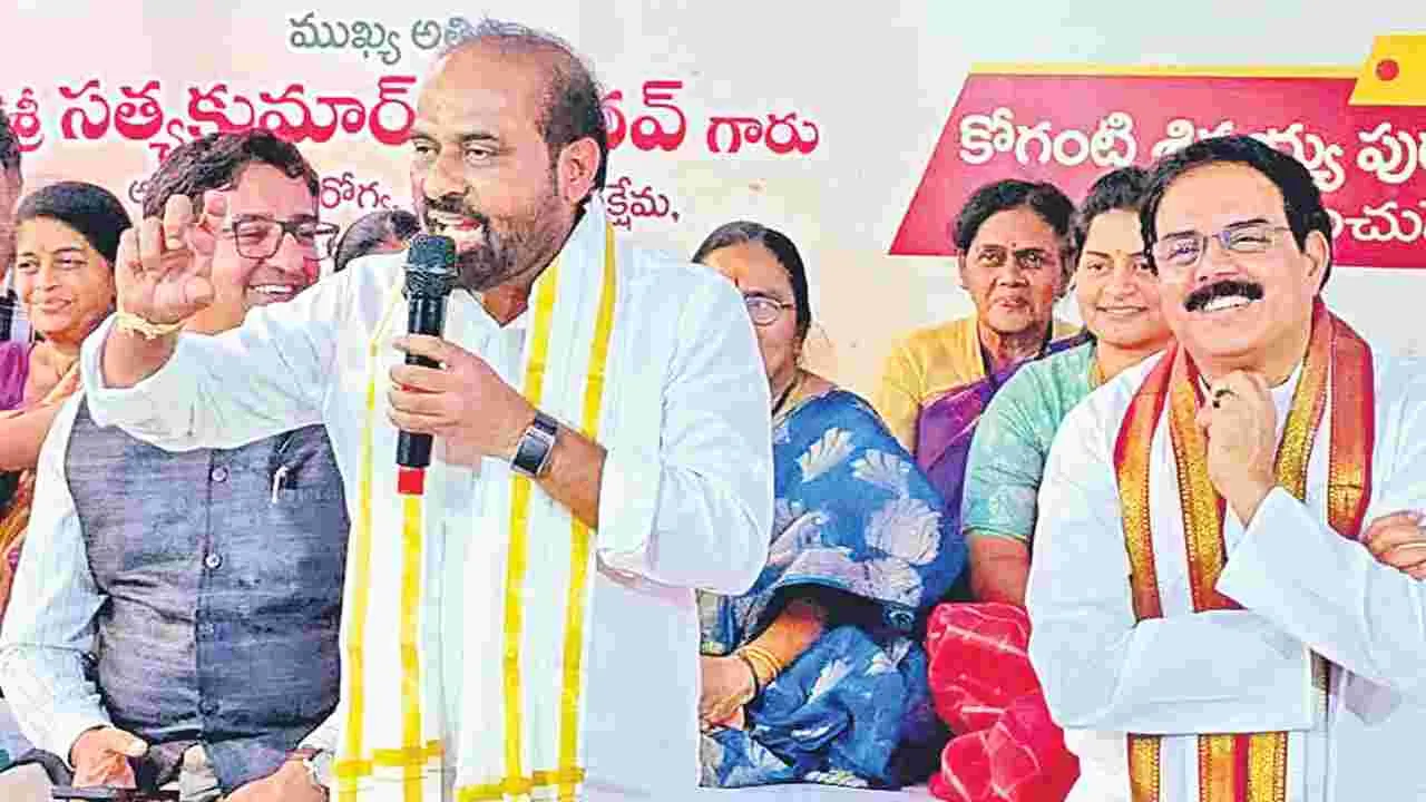 తెనాలి, ఫిబ్రవరి 3(ఆంధ్రజ్యోతి): ‘టీటీడీ తయారు చేసిన లడ్డూల్లో వైసీపీ ప్రభుత్వం కలిపింది కల్తీ నెయ్యి అని ఇప్పటివరకు పొరపాటు పడ్డాం. కీలక నివేదికలు వచ్చాక దానిని కల్తీ అనే కంటే విషం అనడం సముచితమని అనిపిస్తుంది’ అని మంత్రి సత్యకుమార్ అన్నారు. జాతీయ అంధత్వ నివారణ కార్యక్రమంలో భాగంగా ప్రభుత్వ పాఠశాలల్లోని చిన్నారులకు ఉచిత కళ్లజోళ్ల పంపిణీ కార్యక్రమాన్ని రాష్ట్ర వ్యాప్తంగా మంగళవారం గుంటూరు జిల్లా తెనాలిలో మంత్రి నాదెండ్ల మనోహర్తో కలసి ఆయన ప్రారంభించారు. ఈ సందర్భంగా సత్యకుమార్ మాట్లాడుతూ, ‘లడ్డూలో కలిపింది రసాయనాలతో కూడిన విష పదార్థమని తేలడంతో మేము కూడా అవాక్కయ్యం. వైసీపీవాళ్లు మహా పాపానికి ఒడిగట్టారు. కోట్లాది మంది వెంకన్న స్వామి భక్తులను, హిందువుల మనోభావాలను దెబ్బ తీశారు. ఇంకా నిస్సిగ్గుగా కల్తీనే లేదంటూ సీబీఐ కితాబు ఇచ్చిందని బొంకడం క్షమించరాని నేరమే అవుతుంది’ అని మండిపడ్డారు. లడ్డూ ప్రసాదంలో కల్తీ జరగలేదంటూ వైసీపీ నేతలు రోడ్డెక్కుతుంటే జనం దుమ్మెత్తి పోస్తున్న విషయాన్ని పట్టించుకోలేనంత అబద్ధ ప్రచారంలో వైసీపీ నేతలు మునిగిపోయారని మరో మంత్రి మనోహర్ విమర్శించారు. ఒక్కొక్క నివేదిక బయటకు వస్తుంటే నిశ్చేష్టులమవుతున్నామని, ఇంత దారుణానికి వైసీపీ ప్రభుత్వం పాల్పడుతుందని ఊహించనే లేదన్నారు.