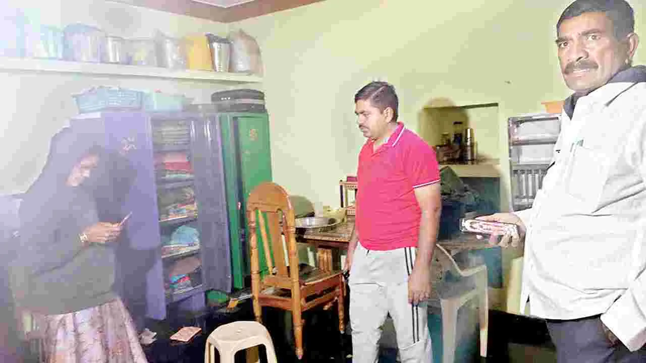 కోవెలకుంట్ల, జనవరి 10 (ఆంధ్రజ్యోతి): పట్టణంలోని బనగానపల్లె రోడ్డులో ఉన్న జయరామిరెడ్డి ఇంట్లో చోరీ జరిగినట్లు ఎస్ఐ మల్లికార్జున రెడ్డి శనివారం తెలిపారు. వివరాలు.. పట్టణానికి చెందిన జయరామిరెడ్డి ఈనెల 5న రాత్రి తన ఇంటికి తాళాలు వేసి బెంగళూరులో ఉన్న కొడుకు వద్దకు వెళ్లారు. 10వ తేదీ ఉదయం బెంగళూరు నుంచి తిరిగి వచ్చి ఇంటికి వెళ్లగా ఇంటి తాళం పగులగొట్టి ఉంది. బీరువాను పగులగొట్టి అందులో ఉన్న 29 తులాల వెండి, 14 గ్రాముల బంగారు, ఇతరు వస్తువులు అపహరించుకెళ్లారు. దొంగతనాన్ని ఛేదించేందుకు క్లూస్ టీమ్ను పిలిపించి, తనిఖీలు నిర్వహించారు. బాధితుడు జయరామి రెడ్డి ఇచ్చిన ఫిర్యాదు మేరకు కేసు నమోదు చేసినట్లు ఎస్ఐ తెలిపారు.