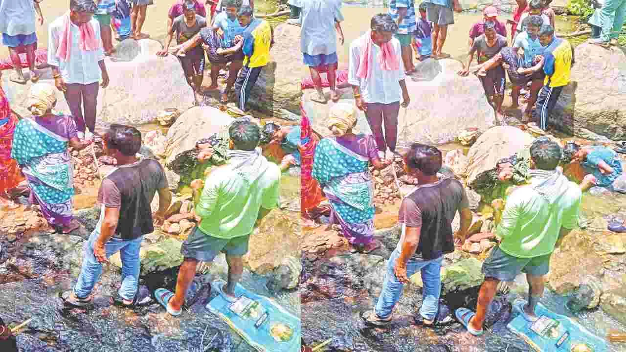 జలపాతం వద్ద నీటి గుమ్మిలో జారిపడి ముగ్గురు గిరిజన బాలికల దుర్మరణం