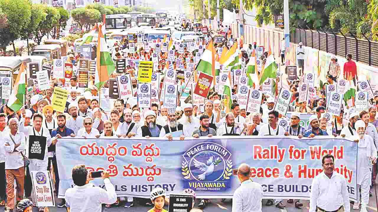 ప్రపంచవ్యాప్తంగా ప్రస్తుతం నెలకొన్న యుద్ధ వాతావరణంపై ఆందోళన వ్యక్తం చేస్తూ, శాంతి సాధన కోసం విజయవాడలో ప్రముఖులు, మతపెద్దలు విస్తృత స్థాయిలో శాంతి ర్యాలీ నిర్వహించారు.