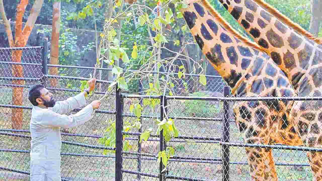 జూలోని రెండు జిరాఫీలను దత్తత తీసుకున్న పవన్