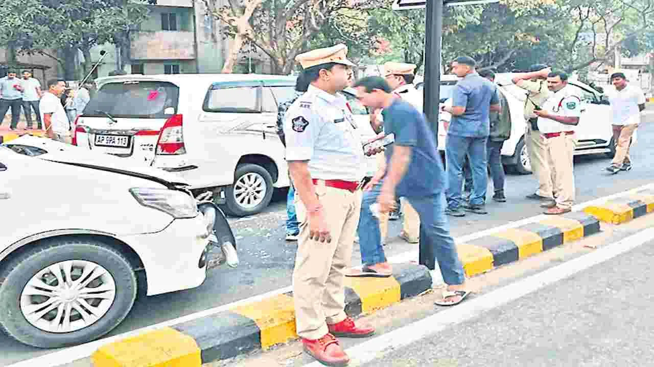 సడన్ బ్రేక్ వేయడంతో ఒకదానికొకటి ఢీకొన్న వాహనాలు