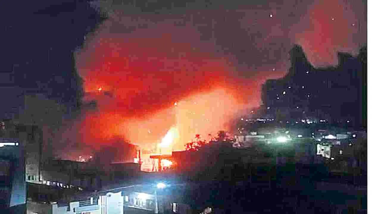 ఉవ్వెత్తున ఎగసిపడిన మంటలు, దట్టంగా కమ్ముకున్న పొగ