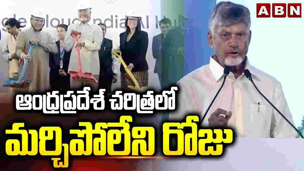 విశాఖపట్నం, ఏప్రిల్ 28 (ఆంధ్రజ్యోతి): ఏపీ చరిత్రలో ఇవాళ మరిచిపోలేని రోజు అని ఆంధ్రప్రదేశ్ ముఖ్యమంత్రి నారా చంద్రబాబు నాయుడు (AP CM Chandra babu Naidu) వ్యాఖ్యానించారు. ఇవాళ ఒక చరిత్రకు శ్రీకారం చుట్టామని ఉద్ఘాటించారు. విశాఖకు గూగుల్ రాక ఏపీకే గేమ్ఛేంజర్ అని అభివర్ణించారు. ఈరోజు (మంగళవారం) తర్లువాడలో రూ.1.35 లక్షల కోట్ల పెట్టుబడితో ఏర్పాటు చేస్తున్న గూగుల్ ఏఐ డేటా సెంటర్కు సీఎం భూమిపూజ చేశారు. విశాఖ గూగుల్ డేటా సెంటర్ దేశానికే గ్రోత్ ఇంజిన్ అని పేర్కొన్నారు.
