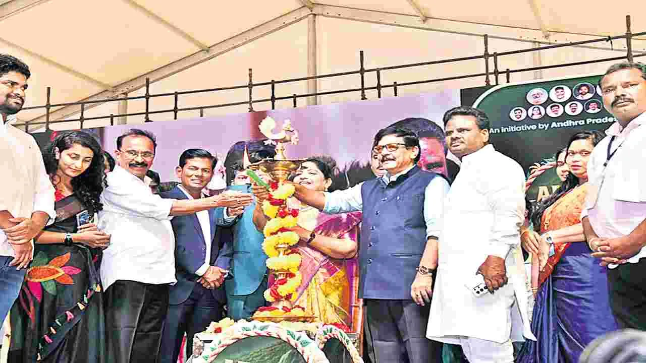 ఉత్సవాన్ని ప్రారంభించిన మంత్రులు దుర్గేశ్, సంధ్యారాణి