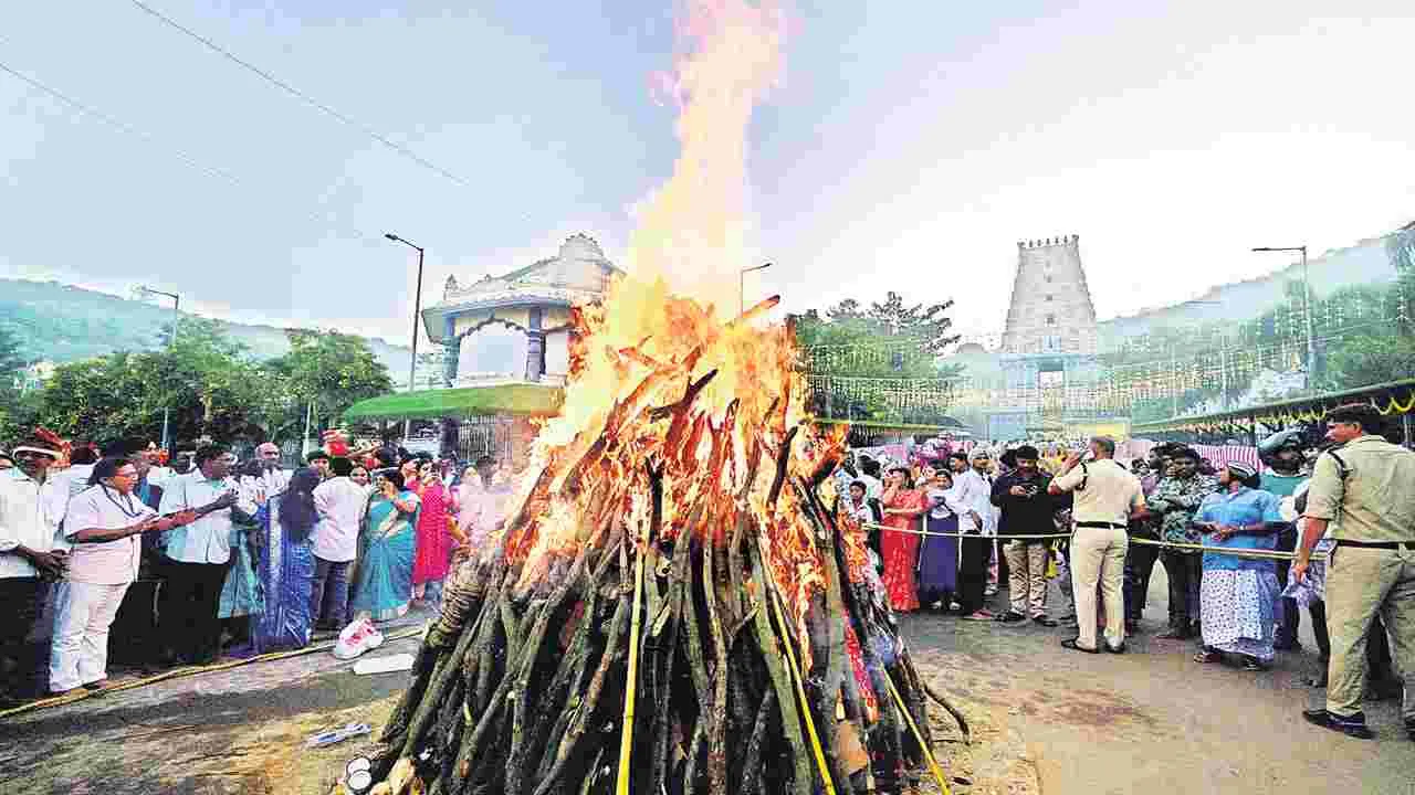 భోగి పండుగను నగరవాసులు బుధవారం ఘనంగా జరుపుకున్నారు. తెల్లవారుజాము నుంచే వీధులు, కాలనీలు, అపార్టుమెంట్లలో పిల్లలు, పెద్దలు సంప్రదాయ దుస్తులు ధరించి భోగి మంటలు వేశారు. సింహగిరిపై భోగి సంబరాలు అంబరాన్ని తాకాయి. ఆలయ ఈవో నున్న సుజాత ఆధ్వర్యంలో నిర్వహించిన సంక్రాంతి సంబరాలకు పశ్చిమ ఎమ్మెల్యే గణబాబు హాజరయ్యారు.