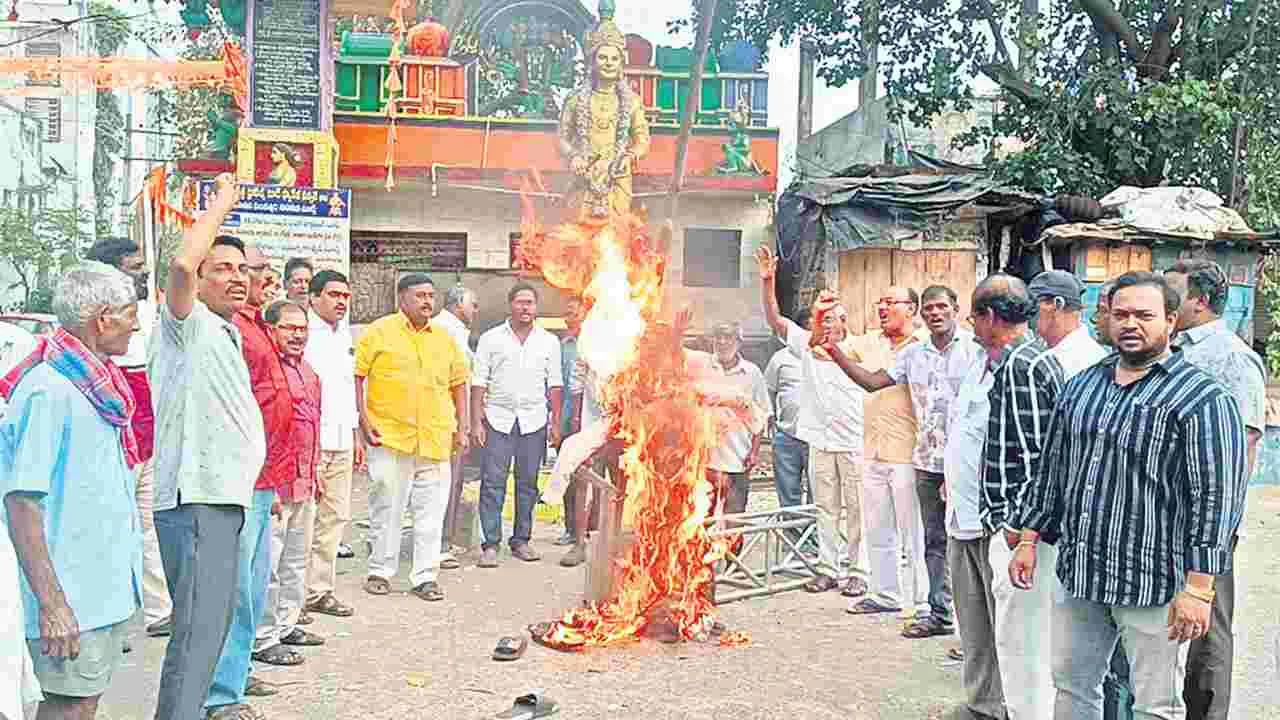 అనకాపల్లి టౌన్, ఫిబ్రవరి 1 (ఆంధ్రజ్యోతి): మాజీ ఎమ్మెల్సీ, తెలుగుదేశం పార్టీ రాష్ట్ర కార్యనిర్వాహక కార్యదర్శి బుద్ద నాగజగదీశ్వరరావు ఆధ్వర్యంలో ఇక్కడ మాజీ మంత్రి అంబటి రాంబాబు దిష్టిబొమ్మను టీడీపీ శ్రేణులు దహనం చేశారు. ఈ సందర్భంగా ఆయన మాట్లాడుతూ, వైసీపీ హయాంలో తిరుమల వేంకటేశ్వరసామి లడ్డూ ప్రసాదాన్ని కల్తీ చేసినట్టు సీబీఐ నియమించిన సిట్ నిర్ధారించిందని, దీంతో ఈ అంశాన్ని పక్కదారి పట్టించడానికి వైసీపీ నేత రాంబాబు, ముఖ్యమంత్రి చంద్రబాబును, మంత్రి లోకేశ్ను ఉద్దేశించి సభ్య సమాజం సిగ్గుపడేలా బూతులు మాట్లాడారని ఆరోపించారు.