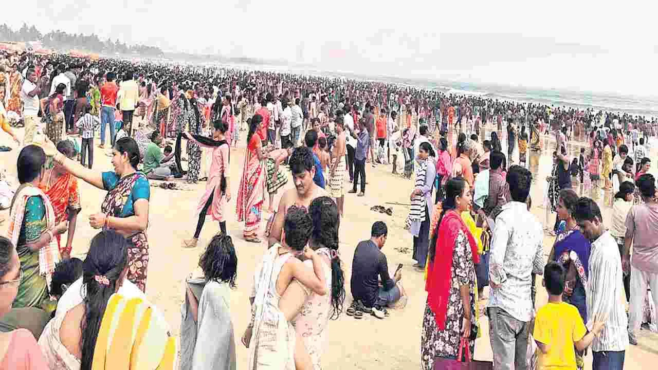 సముద్రంలో పుణ్యస్నానాలకు వేలాదిగా తరలివచ్చిన భక్తులు