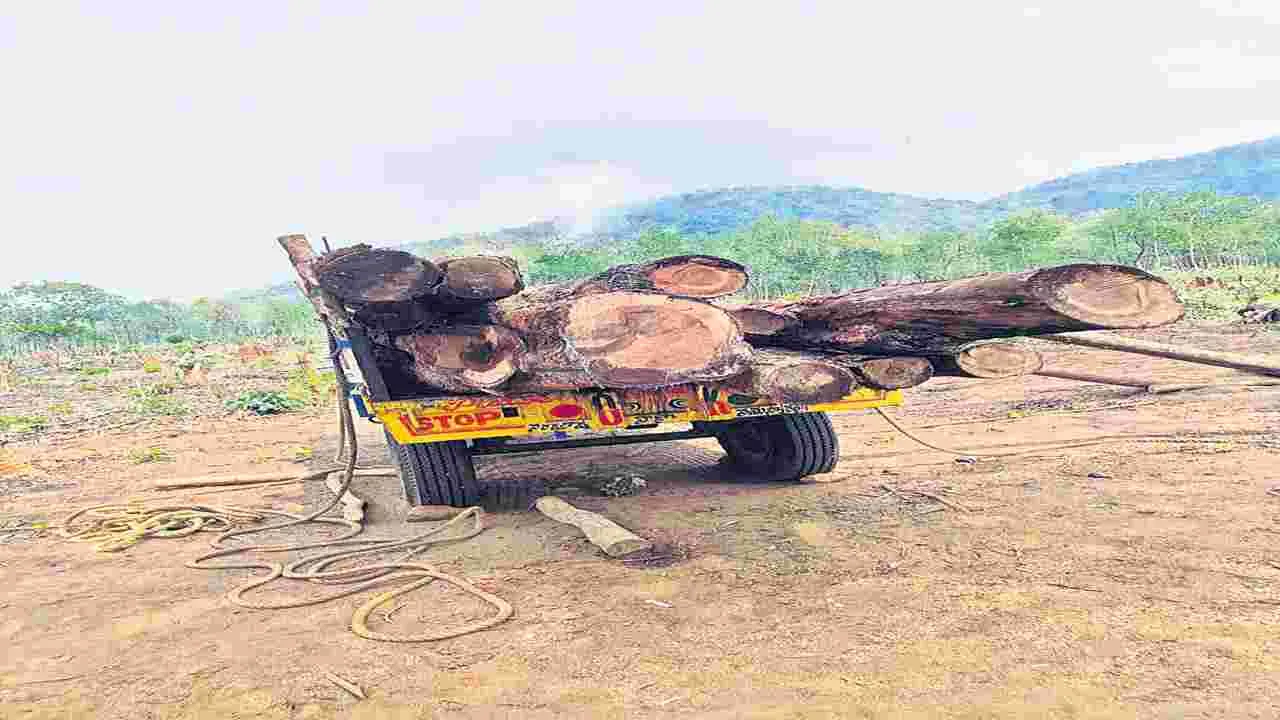 దుంగలను స్వాధీనం చేసుకున్న రేంజర్
