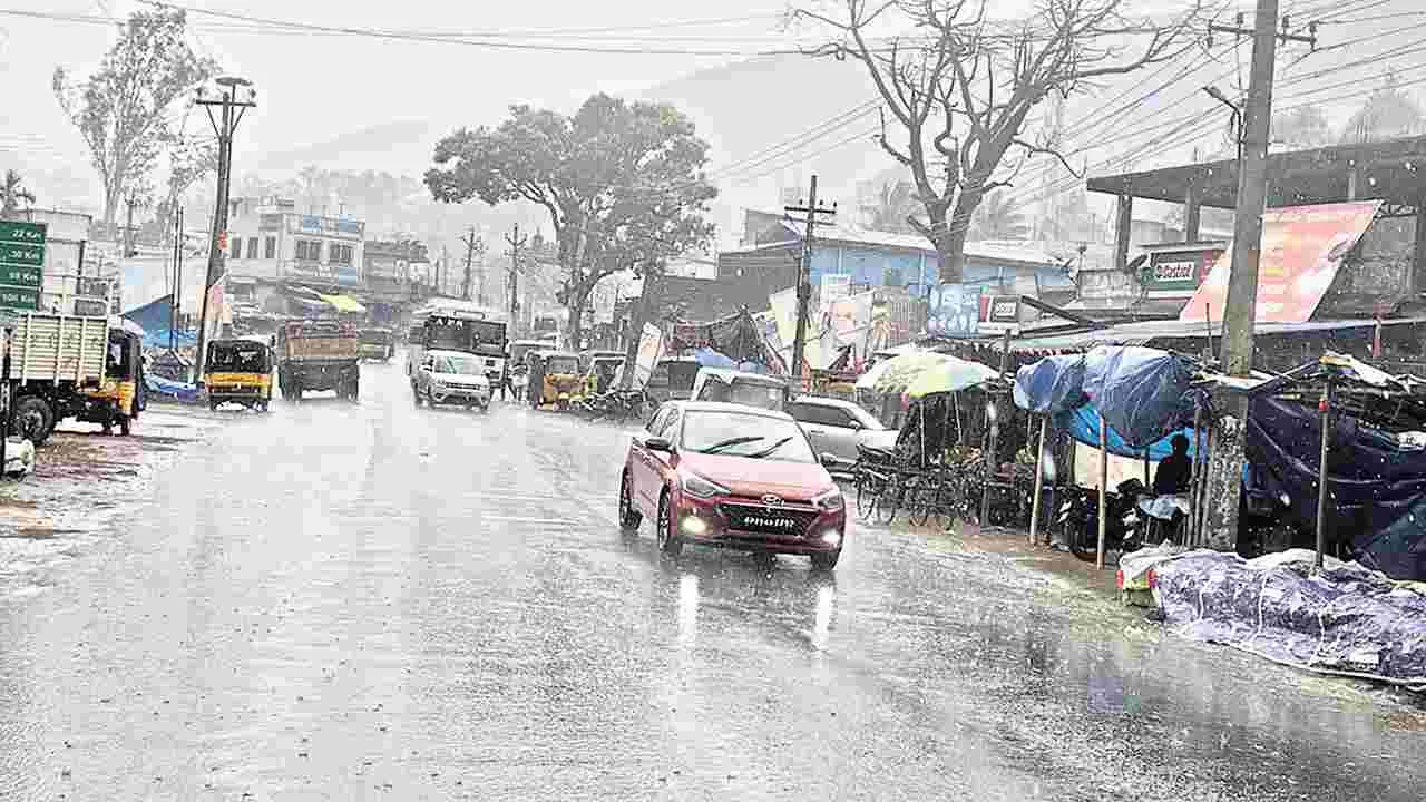 పాడేరు, ఫిబ్రవరి 23(ఆంధ్రజ్యోతి): మన్యంలో సోమవారం విభిన్నమైన వాతావరణం నెలకొంది. తెల్లవారుజాము నుంచి ఉదయం పది గంటల వరకు పొగమంచు దట్టంగా కమ్మేయగా, ఆ తరువాత ఒక మోస్తరుగా ఎండకాసింది. మధ్యాహ్నం ఒంటి గంట తరువాత ఒక్కసారిగా వాతావరణం పూర్తిగా మారిపోయింది. ఆకాశం మేఘావృతమై భారీ వర్షం కురిసింది. దీంతో సోమవారం మధ్యాహ్నం నుంచి ఏజెన్సీ ప్రాంతంలో ముసురు వాతావరణం కొనసాగింది.
