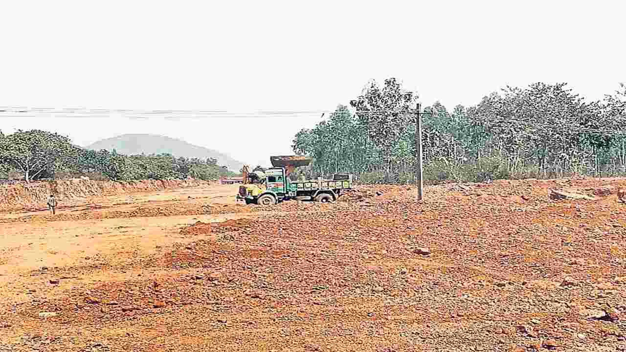 ఏపీఐఐసీ భూముల్లో రోడ్డు నిర్మాణం