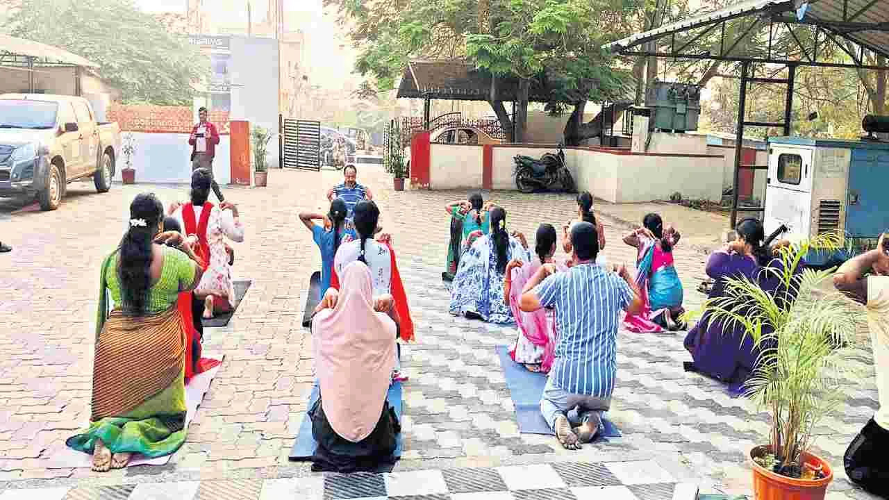 ప్రభుత్వ కార్యాలయాలు, పార్కులు, అపార్టుమెంట్లలో యోగా, క్రీడా శిక్షణ, వ్యాయామం