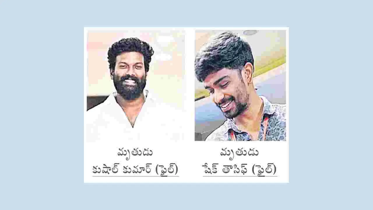కుషాల్కుమార్ తండ్రి సోమశేఖర్ విశాఖ పోర్టు ట్రస్ట్లో పనిచేసి రిటైరయ్యారు. కుమారుడి మరణంతో భోరున విలపిస్తున్నారు. షేక్ తౌసిఫ్ తండ్రి ఘౌస్ మొహిద్దీన్ కనిగిరిలో ఆటో డ్రైవర్గా పనిచేస్తుంటారు. తల్లి షేక్ మల్లిక. ఈ దంపతులకు ఇరువురు కుమారులు. పెద్దకుమారుడు తౌసిఫ్. చిన్నకుమారుడు పాలిటెక్నిక్ కోర్సు పూర్తి చేసి ఉద్యోగ ప్రయత్నంలో ఉన్నాడు.