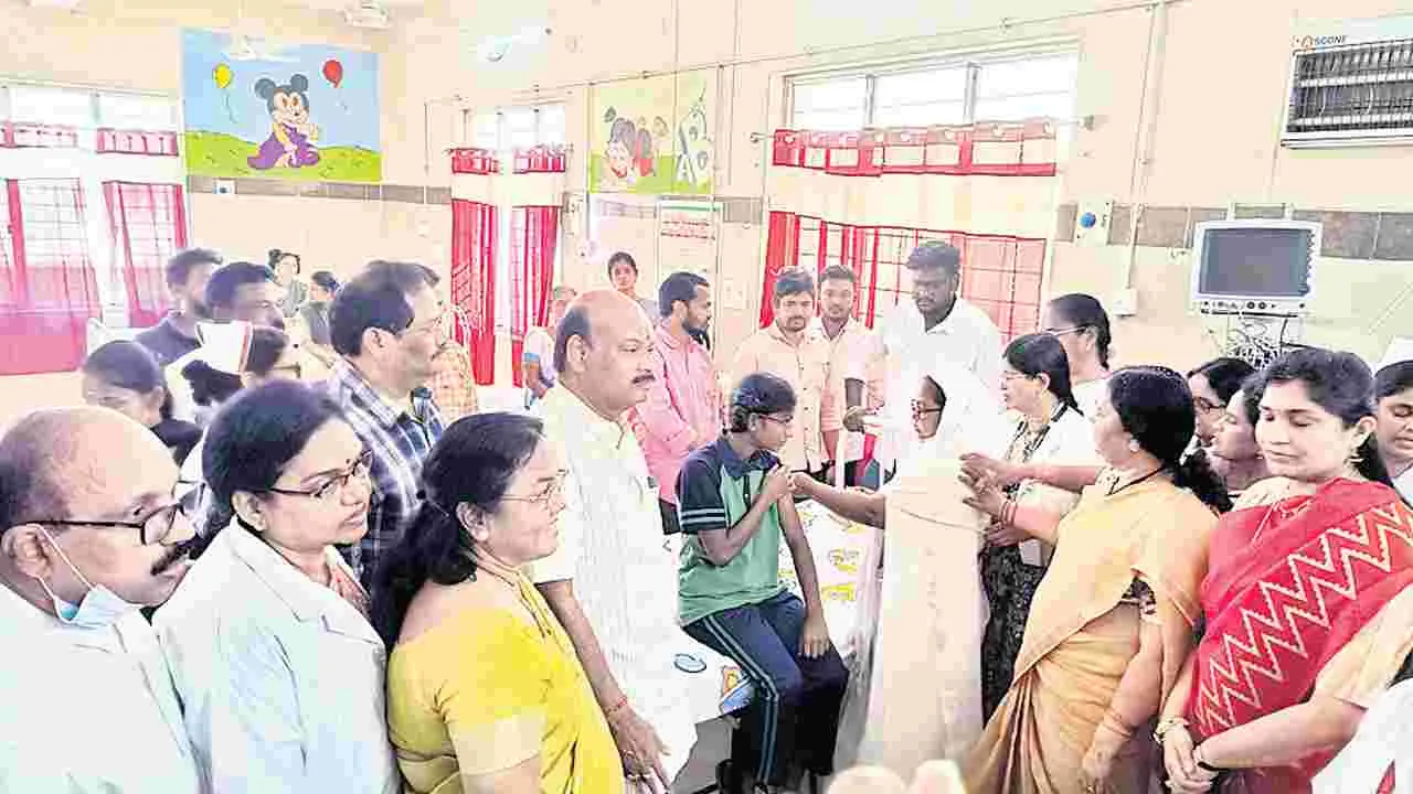 ప్రస్తుతం బాలికలుగా వున్న వారికి భవిష్యత్తులో గర్భాశయ ముఖద్వార క్యాన్సర్ బారినపడకుండా వుండేందుకు ప్రభుత్వం అందుబాటులోకి తీసుకువచ్చిన హెచ్పీవీ (గార్డసిల్) టీకా కార్యక్రమాన్ని శాసనసభ స్పీకర్ చింతకాయల అయ్యన్నపాత్రుడు బుధవారం ప్రాంతీయ ఆస్పత్రిలో ప్రారంభించారు. ఈ సందర్భంగా ఆయన మాట్లాడుతూ, రాజ్యసభ సభ్యురాలు సుధా నారాయణమూర్తి గర్భాశయ ముఖద్వార క్యాన్సర్ గురించి పార్లమెంట్లో ప్రస్తావించడంతో ప్రధాని మోదీ ఉచిత హెచ్పీవీ టీకా కార్యక్రమానికి శ్రీకారం చుట్టారని తెలిపారు. ఈ వ్యాక్సిన్ ప్రైవేటుగా వేసుకోవాలంటే రూ.6 వేల నుంచి రూ.10 వేల వరకు ఖర్చు అవుతుందని తెలిపారు. 14 ఏళ్లు నిండి 15 ఏళ్లలోపు బాలికలకు మాత్రమే ఈ టీకా వేయాలని అన్నారు. వ్యాక్సిన్ కోసం బాలికలను ఆస్పత్రులకు రప్పించకుండా ఆయా పాఠశాలల్లోనే శిబిరాలు నిర్వహిస్తే బాగుంటుందని అన్నారు. ఇందుకు అవసరమైన ఏర్పాట్లను తాను చేస్తానని హామీ ఇచ్చారు. అనంతరం ఆస్పత్రిలో ఓపీ రిసెప్షన్ నూతన కౌంటర్ని ప్రారంభించారు. కార్యక్రమంలో కౌన్సిలర్ చింతకాయల పద్మావతి, డాక్టర్ సువర్ణ, ఆర్డీవో వీవీరమణ, ప్రాంతీయ ఆస్పత్రి మెడికల్ సూపరింటెండెంట్ డాక్టర్ సుధాశారద, డీపీఎం డాక్టర్ ప్రశాంతి, మునిసిపల్ కమిషనర్ సురేంద్ర తదితరులు పాల్గొన్నారు.