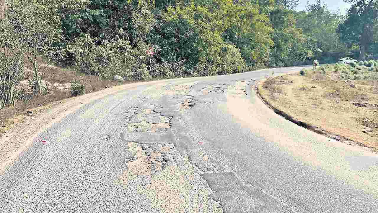 ఏడు కిలోమీటర్ల మేర రోడ్డంతా గోతులు