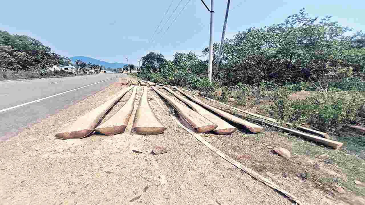 కొయ్యూరు, ఏప్రిల్ 25 (ఆంధ్రజ్యోతి): కొయ్యూరు నుంచి కోల్కతాకు తాటిదూలాలు రవాణా అవుతున్నాయి. పొలాల్లో ఉన్న చేవ గల తాటిచెట్లను వ్యాపారులు కొనుగోలు చేసి లారీల్లో తరలిస్తున్నారు. దీంతో రైతులకు ఆదాయం వస్తోంది. పక్కా గృహ నిర్మాణాలకు ప్రభుత్వాలు సహకారమందిస్తుండడంతో గతంలో మాదిరి తాటాకు ఇళ్ల నిర్మాణాలకు స్థానికులు స్వస్తి పలికారు. ఇప్పటికే 90 శాతం వరకు పక్కా గృహాలు నిర్మించుకున్నారు. దీంతో తాటికమ్మలు, తాటి దూలాలు అవసరం లేకపోవడంతో భూముల్లోని తాటిచెట్లను రైతులు నరకడం మానేశారు. అయితే ఇదే సమయంలో కోల్కతా పరిసర ప్రాంతాలకు చెందిన వారు కోళ్ల ఫారాలు, డెయిరీ, తదితర షెడ్ల నిర్మాణాలకు ఈ ప్రాంతంలోని తాటిచెట్లు కొనుగోలుకు సిద్ధపడ్డారు. బాగా చేవ గలిగిన తాటిచెట్టును రూ.300 నుంచి రూ.500 వరకు కొనుగోలు చేస్తున్నారు. కొందరు రైతులు తాటిచెట్లను ఉచితంగానే ఇచ్చేస్తున్నారు. దీంతో కోల్కతా వ్యాపారులు గడిచిన మూడు, నాలుగు నెలల నుంచి గ్రామగ్రామాన తిరుగుతూ తాటిచెట్లను కొనుగోతు చేసి, యంత్రాలతో అవసరమైన సైజులలో దూలాలుగా తయారు చేసుకుని లారీలలో కోల్కతా తరలిస్తున్నారు.