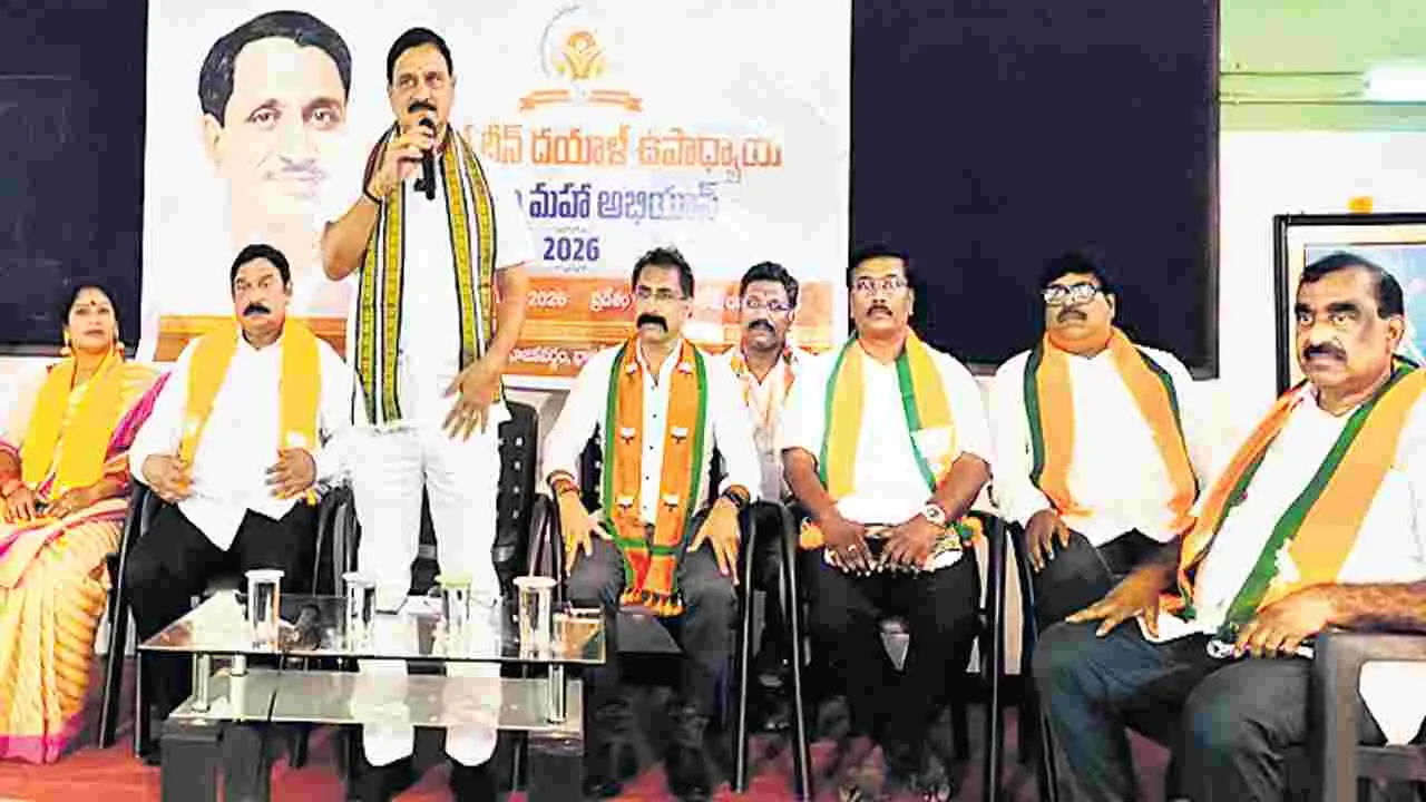 విశాఖ స్టీల్ప్లాంటును ప్రైవేటీకరిస్తానే దుష్ప్రచారాన్ని ఖండించాలని, కేంద్ర ప్రభుత్వం ప్లాంటు అభివృద్ధికి రూ.11,500 కోట్లు మంజూరు చేసిందని, ఆ మొత్తంతో గత మూడు నెలల్లో ప్లాంటు లాభాల బాట పట్టిందని కేంద్ర భారీ పరిశ్రమలు, ఉక్కుశాఖ సహాయ మంత్రి భూపతిరాజు శ్రీనివాస వర్మ పేర్కొన్నారు. ద్వారకానగర్ బీవీకే కళాశాలలో బీజేపీ జిల్లా అధ్యక్షుడు ఎంఎంఎన్ పరశురామరాజు అధ్యక్షతన ఆదివారం నిర్వహించిన పండిట్ దీన్దయాళ్ ఉపాధ్యాయ ప్రశిక్షణ కార్యక్రమంలో ఆయన ముఖ్య అతిథిగా పాల్గొన్నారు. ఈ సందర్భంగా మంత్రి మాట్లాడుతూ స్టీల్ప్లాంటు ప్రైవేటీకరణపై కొన్నిపార్టీలు చేస్తున్న దుష్ప్రచారాన్ని కార్యకర్తలు ప్రజల్లోకి తీసుకెళ్లాలని పిలుపునిచ్చారు. అనకాపల్లి జిల్లాలో అర్సెలర్ మిట్టల్ స్టీల్ప్లాంటు రూ.1,35,964 కోట్ల వ్యయంతో నిర్మించి, సుమారు 50 వేలపైగా ఉద్యోగావకాశాలు కల్పిస్తుందన్నారు. రానున్న కార్పొరేషన్ ఎన్నికల్లో తగిననిన సీట్లు డిమాండ్ చేసలా బీజేపీ కార్యకర్తలు పార్టీని పటిష్ట పరచాలన్నారు. దీన్దయాల్ ఉపాధ్యాయ అంత్యోదయ సూత్రాన్ని ఆచరణలో పెట్టాలన్నారు. ఉత్తర ఎమ్మెల్యే పి.విష్ణుకుమార్రాజు మాట్లాడుతూ కార్యకర్తలు శిక్షణను వినియోగించుకోవాలన్నారు. కార్యక్రమంలో బుద్ద లక్ష్మీనారాయణ, సుహాసిని ఆనంద్, విజయనంద్రెడ్డి, కేశవకాంత్, సురేష్బాబు, పుట్ట గంగయ్య, నాయకులు, కార్యకర్తలు పాల్గొన్నారు.