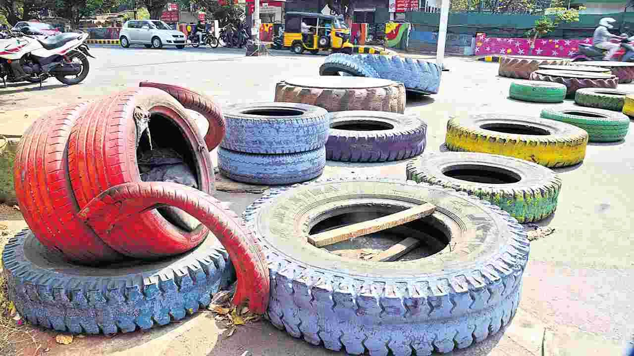 పనికిరాని టైర్లు, డ్రమ్ములు, ఇతర వస్తువులు వినియోగం