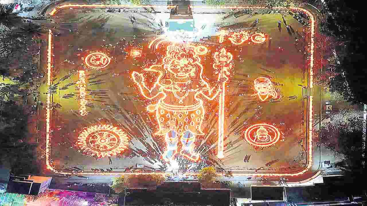 భీష్మ ఏకాదశి సందర్భంగా స్థానిక షిరిడి సాయిబాబా ఆలయ కమిటీ ఆధ్వర్యంలో ఎన్టీఆర్ మిని స్టేడియంలో గురువారం రాత్రి లక్ష ప్రమిదల దీపారాధన నిర్వహించారు. శిరస్సుపై గంగ, మెడలో నాగపాము, చేతిలో త్రిశూలం ధరించిన శివుడు రూరంలో అమర్చిన ప్రమిదల్లో తైలం పోసి వందలాది మంది మహిళాభక్తులు దీపాలు వెలిగించారు.