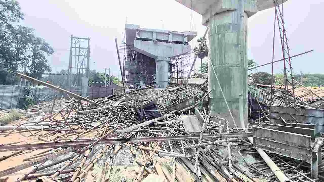 తరచూ రైల్ క్రాసింగ్ గేటు మూసి ఉండడంతో కార్మికులు, విద్యార్థులు, వ్యాపారులతో పాటు సుమారు 30 గ్రామాలు ప్రజలకు ఇక్కట్లు పెరిగాయి. కూటమి అధికారంలోకి వచ్చిన తరువాత పారిశ్రామికవేత్తలు, ప్రజా ప్రతినిధులు బ్రిడ్జి నిర్మాణంపై వినతులు సమర్పించడంతో టీడీపీ రాష్ట్ర అధ్యక్షుడు, గాజువాక ఎమ్మెల్యే పల్లా శ్రీనివాసరావు ప్రభుత్వం దృష్టికి తీసుకువెళ్లి కేంద్ర ప్రభుత్వం సేతుబంధన్ పథకంలో భాగంగా రూ.26 కోట్లు మంజూరు చేయించారు. దీంతో పనులు ప్రారంభమయ్యాయి. ఈ క్రమంలో కాంక్రీట్ వేస్తుండగా ఆదివారం ఒక్కసారిగా డెకింగ్ కుప్పకూలిపోయింది. పశ్చిమబెంగాల్, బిహార్, ఉత్తరప్రదేశ్కు చెందిన వందలాది మంది కార్మికులు బ్రిడ్జి నిర్మాణ పనులు చేస్తున్నారు. బ్రిడ్జి కుప్పకూలిపోవడంపై నిర్మాణ సంస్థ రామ్ ఎంటర్ప్రైజెస్పై కేసు నమోదుచేసినట్టు దువ్వాడ సీఐ మల్లేశ్వరరావు తెలిపారు.