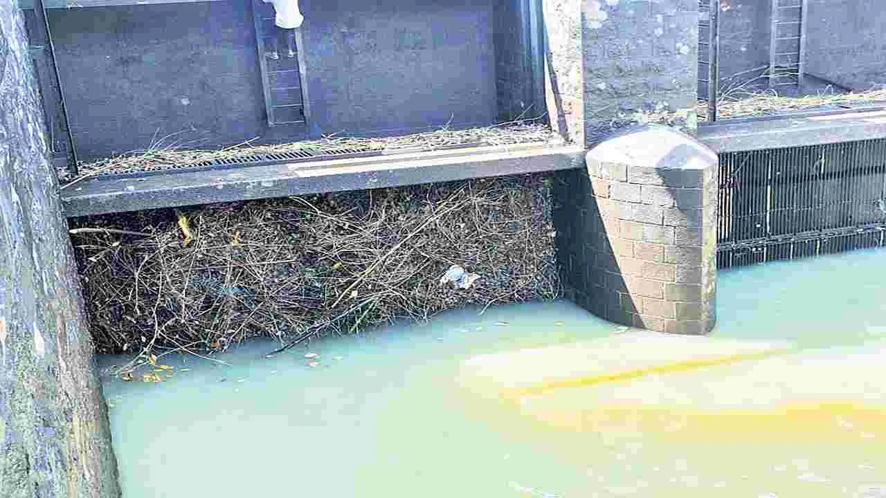 డ్యామ్ ఇనుప జాలీల వద్ద చెత్తాచెదారం పేరుకుపోయి నీటి సరఫరాకు అంతరాయం