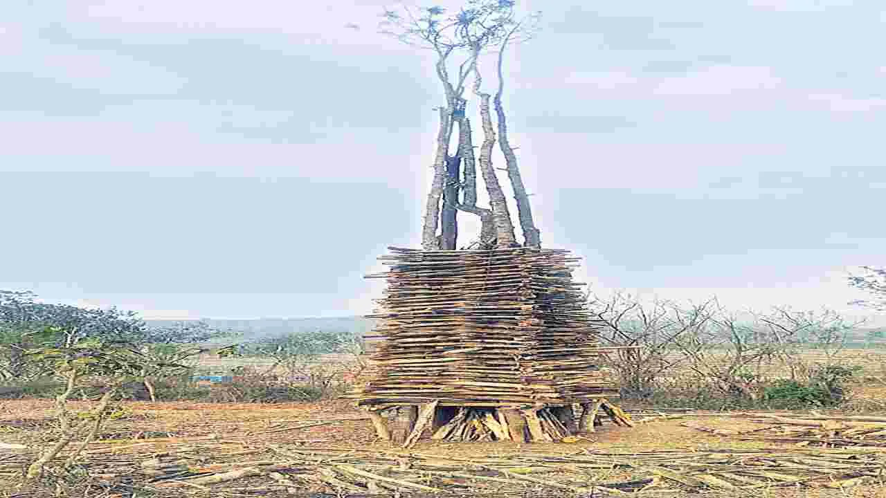 70 అడుగుల కర్రల పోగు దహనం రేపు