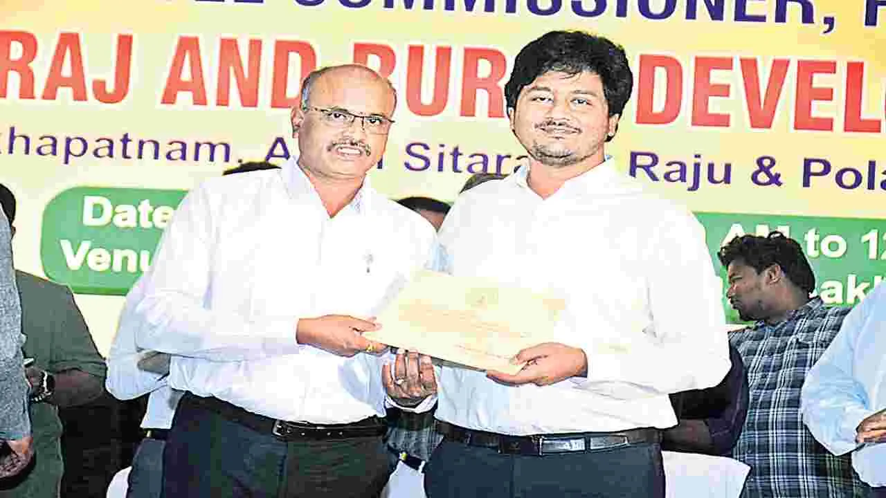 ప్రభుత్వ లక్ష్యాలు, మార్గదర్శకాలకు అనుగుణంగా ప్రజాసేవే లక్ష్యంగా అధికారులు పనిచేయాలని రాష్ట్ర పంచాయతీరాజ్, గ్రామీణాభివృద్ధి కమిషనర్ మైలవరపు కృష్ణతేజ పిలుపునిచ్చారు. సమష్టిగా కుటుంబ స్ఫూర్తితో పనిచేసి ప్రజలకు నాణ్యమైన సేవలు అందించాలన్నారు. రాష్ట్ర ఉప ముఖ్యమంత్రి పవన్కల్యాణ్ ఉద్యోగుల బాగు కోసం తపిస్తుంటారని, దానిలో భాగంగానే ఒకేసారి 77 మందికి సీఈవోలుగా, మరో పది వేల మందికి పదోన్నతులు కల్పించారన్నారు. పంచాయతీ కార్యదర్శి పేరును పంచాయతీ అభివృద్ధి అధికారిగా, ఈవో ఆర్డీని డిప్యూటీ ఎంపీడీవోగా హోదాగా పరిగణిస్తున్నామన్నారు. మనమంతా ఒకే కుటుంబంలా ఉండాలని ఉపముఖ్యమంత్రి సూచిస్తుంటారన్నారు. వీఎంఆర్డీఏ చిల్ట్రన్ ఎరీనాలో శనివారం విశాఖపట్నం, అల్లూరి సీతారామరాజు, పోలవరం జిల్లాలకు చెందిన పంచాయతీరాజ్, గ్రామీణాభివృద్ధి శాఖల అధికారులతో నిర్వహించిన సమీక్షా సమావేశంలో ఆయన మాట్లాడుతూ ప్రభుత్వం చేపడుతున్న అభివృద్ధి కార్యక్రమాలను అమలు చేయడంలో ఎటువంటి అలసత్వం ఉండకూడదని హెచ్చరించారు. ఈనెల 15వ తేదీకల్లా అన్నిరకాల పన్నులు వసూలు చేయాలని, ఆదాయ వనరులు మరింతగా పెంచాలని ఆదేశించారు. గ్రామీణాభివృద్ధి శాఖ పరిధిలో చేపట్టిన పనులకు సంబంధించి బిల్లులు జాప్యం లేకుండా ఆన్లైన్లో అప్లోడ్ చేయాలన్నారు. మధ్యలో నిలిచిపోయిన పనులను యుద్ధప్రాతిపదికన పూర్తిచేయాలని, అన్ని పనులకు సంబంధించి బిల్లులు వచ్చే నెలాఖరులోగా అప్లోడ్ చేయాలని ఆదేశించారు. బాగా పనిచేసిన వారికి ఎల్లప్పుడూ ప్రోత్సహం ఉంటుందని, అదే సమయంలో విధి నిర్వహణలో అలసత్వం ప్రదర్శించిన వారిపై క్రమశిక్షణ చర్యలు ఉంటాయని స్పష్టంచేశారు. బాగా పనిచేసిన అధికారులు, పన్నులు వసూలుచేసిన పంచాయతీ కార్యుదర్శులను అభినందిస్తూ సమీక్షలో పాల్గొన్న వారితో చప్పట్లు కొట్టించారు. ఈ సందర్భంగా ఉత్తమ పనితీరు కనబరిచిన విశాఖపట్నం, అల్లూరి సీతారామరాజు జిల్లాల పంచాయతీ అధికారులు ఎంఎన్వీ శ్రీనివాసరావు, చంద్రశేఖరరావు, పలువురు పంచాయతీ కార్యదర్శులకు కమిషనర్ ప్రశంసాపత్రాలు అందించి అభినందించారు. సమీక్షలో విశాఖ జిల్లా పరిషత్ సీఈవో పి.నారాయణమూర్తి, డిప్యూటీ సీఈవో రాజకుమార్, ఇతర అధికారులు పాల్గొన్నారు.