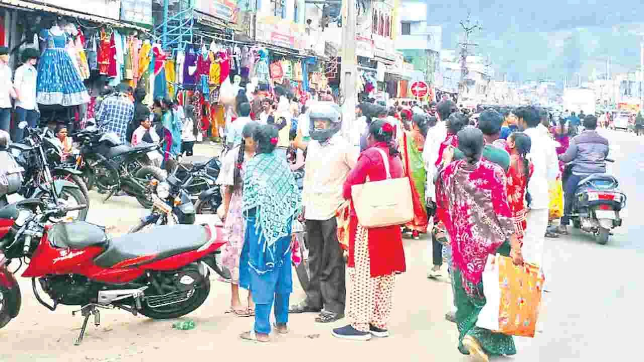 పాడేరులో రద్దీగా వస్త్ర, కిరాణా దుకాణాలు