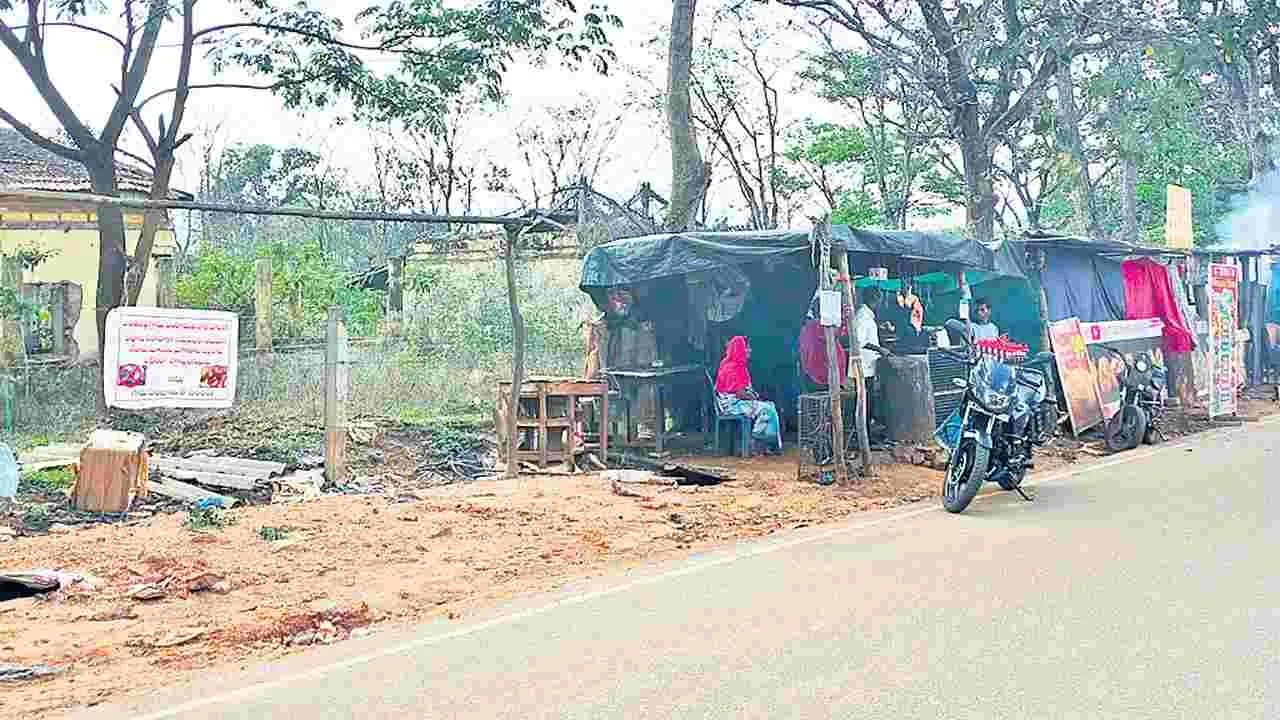 యథేచ్ఛగా రోడ్డుకు ఇరువైపులా దుకాణాలు