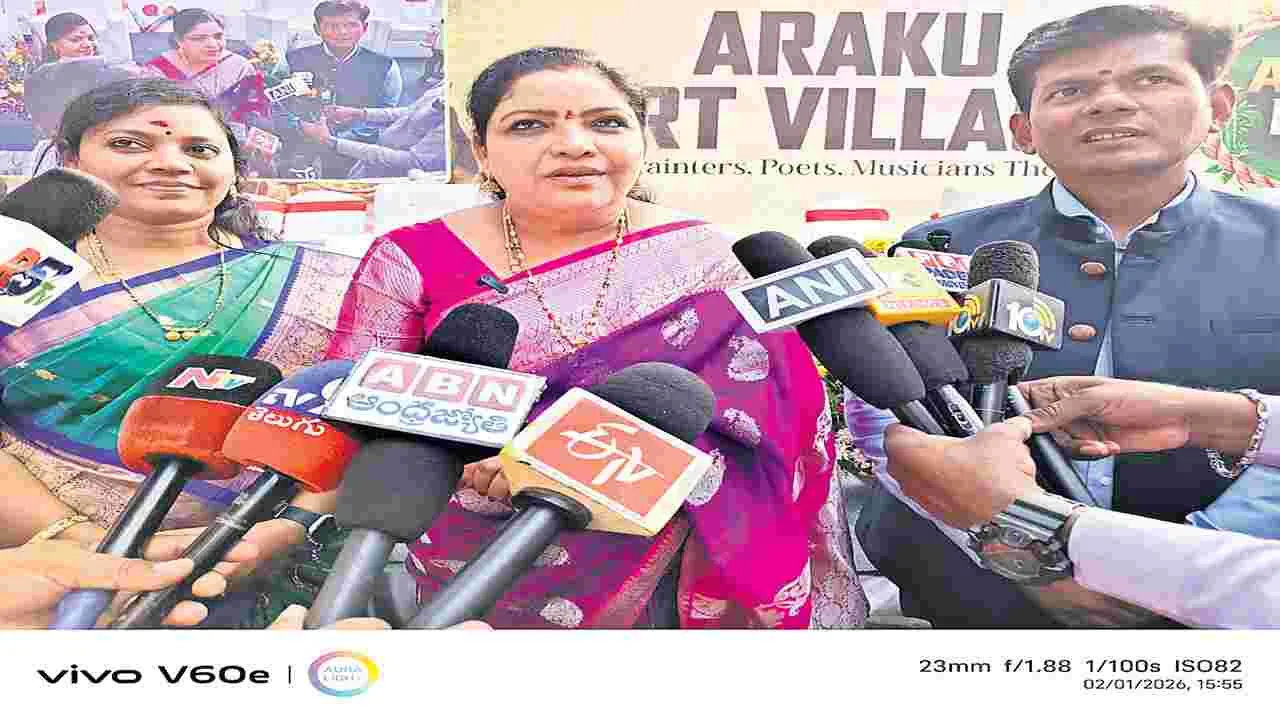 అరకులోయ, ఫిబ్రవరి 1 (ఆంధ్రజ్యోతి): అరకు కాఫీకి ఎంత ఖ్యాతి వచ్చిందో అరకు కౌనికి (అరకు డిష్) అంతే ప్రాచుర్యం తెచ్చేలా అరకు ఉత్సవ్-2026తో అందుబాటులోకి తీసుకురావడం జరిగిందని రాష్ట్ర గిరిజన, మహిళా, శిశు సంక్షేమ శాఖా మంత్రి, అల్లూరి జిల్లా ఇన్చార్జి మంత్రి గుమ్మడి సంధ్యారాణి అన్నారు. ఆదివారం మధ్యాహ్నం అంజోడ ఫైనరీలో రంపచోడవరం ఎమ్మెల్యే శిరీషాదేవి, జీసీసీ చైర్మన్ శ్రావణ్కుమార్, కలెక్టర్ ఏఎస్దినేశ్కుమార్, ఐటీడీఏ పీవో శ్రీపూజలతో కలిసి విలేకర్లతో మాట్లాడారు. ఇకపై అరకుకౌని అన్ని రెస్టారెంట్స్లో అందుబాటులో ఉండేలా ప్రత్యేక చర్యలు తీసుకుంటున్నట్టు తెలిపారు. చిరుధాన్యాలు, ఇతర పోషక విలువలున్న మిల్లెట్స్తో అరకుకౌని తయారు చేస్తున్నట్టు చెప్పారు. ఒకప్పడు రాగులతో చేసిన అంబలి, బొన్న జావను తింటున్నామంటే కొంత నామోషిగా భావించేవారని, అన్నంకు అధిక ప్రాధాన్యతనిచ్చేవారన్నారు. ప్రస్తుతం బీపీ, షుగర్లు ప్రతి ఒక్కరికి వస్తున్న నేపథ్యంలో చిరుధాన్యాలకు ఎక్కడ లేని డిమాండ్ పెరిగిందన్నారు. కొన్ని ప్రాంతాల్లో సవర, వర్ల తెగలకు గుర్తింపు ఉందని, ఈ ప్రాంత గిరిజన తెగలకు గుర్తింపు ఉండాలనే లక్ష్యంతో ఆంధ్రవిశ్వవిద్యాలయానికి చెందిన రిటైర్డు ప్రొఫెసర్లు, ఫైన్ ఆర్ట్స్ నిపుణులతో పరిశోధనలు చేయించి, మూడు నెలల్లో నివేదిక తెప్పిస్తామన్నారు. ఆగస్టు 9వ తేదీ అంతర్జాతీయ గిరిజన దినోత్సవం నాటికి ప్రత్యేక ఆర్ట్ ఫాంను తీసుకువచ్చేందుకు చర్యలు తీసుకుంటున్నట్టు చెప్పారు. గిరిజనుల జీవనోపాధి పెంచేందుకు హోంస్టే పాలనీని అమలులోకి తీసుకువచ్చామన్నారు. హోం స్టేలతో పాటు అరకు డిష్, అరకు కాఫీ వంటి వాటితో గిరిజనులు ఆర్థికాభివృద్ధి సాధించే విధంగా ప్రత్యేక చర్యలు తీసుకుంటున్నట్టు మంత్రి సంధ్యారాణి తెలిపారు. ఏజెన్సీలో రహదారుల అభివృద్ధికి గిరిజన సంక్షేమ శాఖ ద్వారా రూ.500 కోట్లు మంజూరు చేశామన్నారు. వీటితోపాటు ఉపముఖ్యమంత్రి పవన్కల్యాణ్ పంచాయతీరాజ్ శాఖా ద్వారా రూ.వెయ్యి కోట్లతో మారుమూల ప్రాంతాలకు రహదారులు ఏర్పాటు చేస్తున్నారన్నారు. డోలీ రహిత గిరిజన ప్రాంతాలుగా అభివృద్ధి చేయాలన్నదే కూటమి ప్రభుత్వ లక్ష్యమన్నారు. గత వైసీపీ ప్రభుత్వ హయాంలో అభివృద్ధి జాడే లేదని, అధికారం కోల్పోయిన తర్వాత విమర్శలు చేస్తున్నారన్నారు. ఒక్క మారుమూల గిరిజన గ్రామానికి కూడా రహదారి వేయలేదన్నారు. అరకు ఉత్సవ్తో గిరిజన ప్రాంతం, గిరిజనుల జీవన విధానం ఎంతగానో దోహదం చేసిందన్నారు.