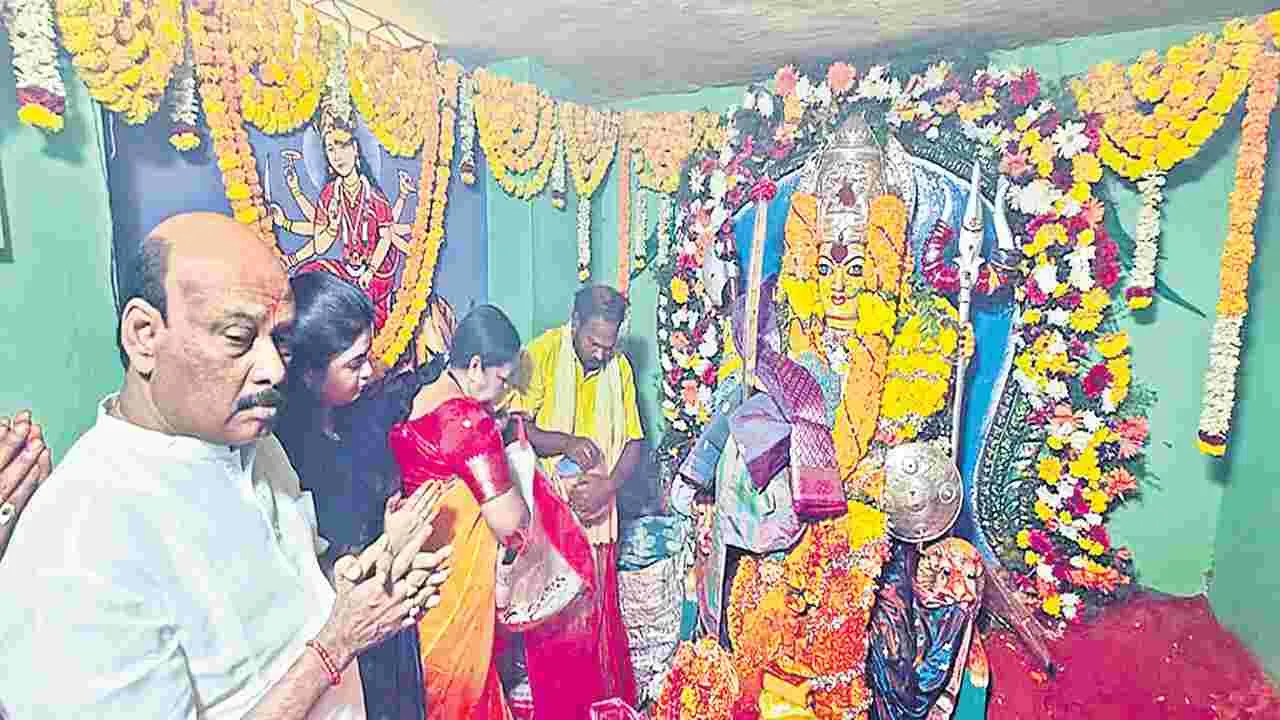 అరకులోయ, ఏప్రిల్ 17 (ఆంధ్రజ్యోతి): శాంతమ్మదేవి ఆశీస్సులు రాష్ట్రంపైన ఉండాలని, దేశంలో నెంబర్ వన్గా నిలవాలని, ముఖ్యమంత్రి చంద్రబాబునాయుడు సంపూర్ణ ఆరోగ్యవంతులుగా ఉండాలని అమ్మవారిని ప్రార్థించానని రాష్ట్ర శాసనసభ స్పీకర్ చింతకాయల అయ్యన్నపాత్రుడు తెలిపారు. శుక్రవారం ఉదయం అరకులోయ సమీపంలోని యండపల్లివలస శాంతమ్మదేవి అమ్మవారి ఆలయాన్ని స్పీకర్ అయ్యన్నపాత్రుడు కుటుంబ సమేతంగా సందర్శించారు. అమ్మవారికి ప్రత్యేక పూజలు చేశారు. అనంతరం కుటుంబ సభ్యులందరూ హుండీలో డబ్బులు వేశారు. అనంతరం స్పీకర్ అయ్యన్నపాత్రుడు విలేకర్లతో మాట్లాడారు. భావితరాల వారికి రాష్ట్రం ఆదర్శంగా నిలిచేంతగా అభివృద్ధి చెందాలని అమ్మవారిని కోరానన్నారు. రాష్ట్ర అభివృద్ధికి ప్రధానమంత్రి నరేంద్ర మోదీ అన్ని విధాల సహకరిస్తున్నారన్నారు. నర్సీపట్నంలో ఉంటున్న త్రినాథ్, నా తల్లిదండ్రులు 40 ఏళ్ల క్రితం ఇక్కడ శాంతమ్మదేవి అమ్మవారి ఆలయాన్ని నిర్మించారన్నారు. ఈ ఆలయాన్ని తాను గత 15 ఏళ్లుగా సందర్శించి, అమ్మవారి ఆశీస్సులు పొందుతున్నానన్నారు. శాంతమ్మదేవి అమ్మవారి ఆశీస్సులు అందరికీ ఉండాలన్నారు. ఈ పండగకు గత రెండేళ్లు నుంచి రాలేకపోయానని, తనకు కొంతఇబ్బందిగా అనిపించిందన్నారు. ఇటీవల త్రినాథ్ కుటుంబ సభ్యులు అమ్మవారి పండుగకు రావాలని ఆహ్వానించడంతో కుటుంబ సభ్యులతో కలిసి వచ్చి అమ్మవారిని దర్శించుకున్నట్టు స్పీకర్ అయ్యన్నపాత్రుడు చెప్పారు. ఆయనతోపాటు ఆర్టీసీ విజయనగరం రీజియన్ చైర్మన్ సియ్యారి దొన్నుదొర, ఆయన సతీమణి, ఆలయ నిర్వాహకులు త్రినాథ్ కుటుంబ సభ్యులు, టీడీపీ మండల అధ్యక్షుడు మమాదేవ్, మాజీసర్పంచ్ దాసుబాబు, ఏఎంసీ చైర్మన్ బొరిబొరి లక్ష్మి, మహిళా నాయకురాలు బూర్జ లక్ష్మి, సీవేరి ఇచ్చావతి అమ్మవారిని దర్శించుకున్నారు. స్థానిక సీఐ హిమగిరి, ఎస్ఐ మల్లేశ్వరరావు ఆధ్వర్యంలో బందోబస్తును ఏర్పాటు చేశారు.