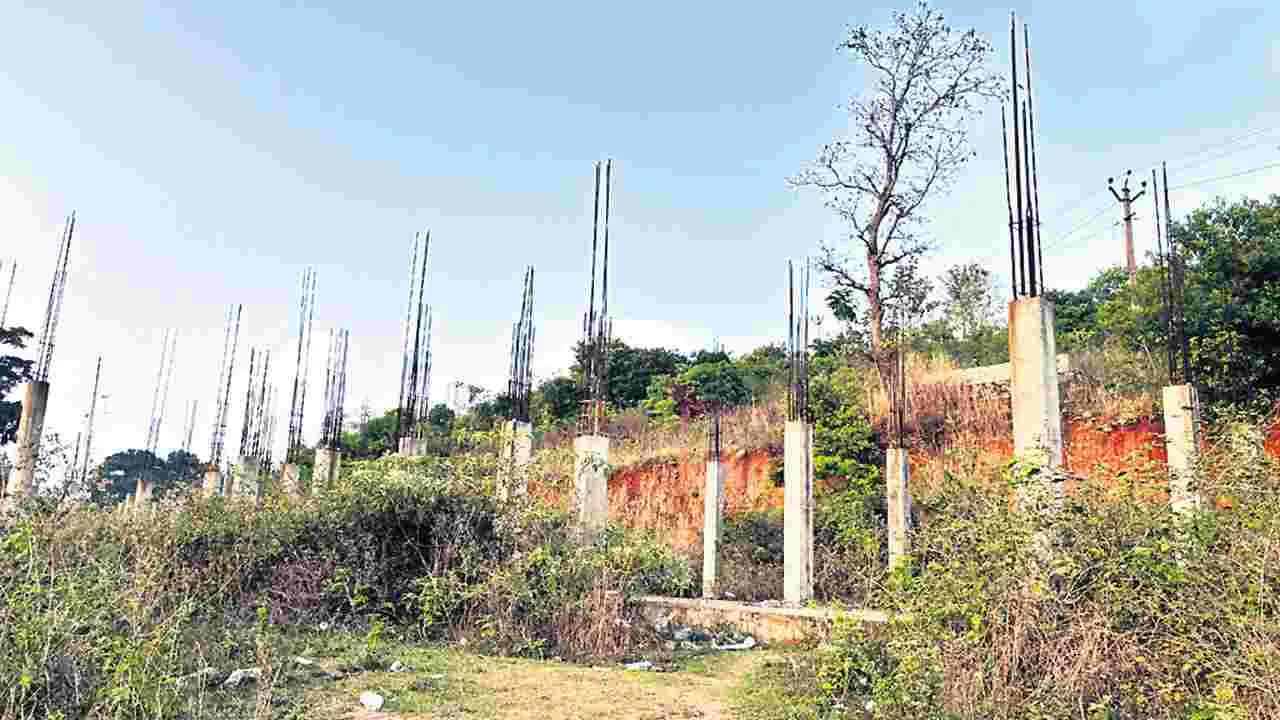 పిల్లర్లకే పరిమితమైన వసతిగృహం భవనాలు