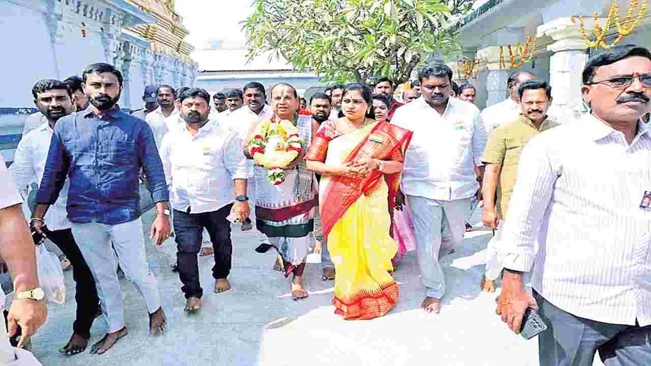 ఉపమాక క్షేత్రంలో వచ్చే నెల 26 నుంచి జరగనున్న స్వామివారి వార్షిక కల్యాణోత్సవాలను టీటీడీ, ప్రభుత్వ శాఖల అధికారులు సమన్వయంతో పనిచేసి విజయవంతం చేయాలని హోం మంత్రి అనిత ఆదేశించారు. వెంకన్న కల్యాణోత్సవాలపై సోమవారం ఉదయం ఆలయంలో నాయకులు, అధికారులతో సమీక్ష జరిపారు. ఈ సందర్భంగా ఆమె మాట్లాడుతూ, ఉపమాక వెంకన్న తమ ఇలవేల్పని, అందుకే అభివృద్ధి పనుల కోసం టీటీడీ నుంచి రూ.5.46 కోట్లు మంజూరు చేయించానని చెప్పారు. ఉత్సవాలకు హాజరయ్యే భక్తులకు ఎక్కడా అసౌకర్యం కలగకుండా తగిన ఏర్పాట్లు చేయాలని ఆదేశించారు. ఉత్సవాల సమయంలో 40 నుంచి 50 వేల వరకు టీటీడీ లడ్డూ ప్రసాదాలను ఇక్కడ విక్రయించేలా టీటీడీ చైర్మన్, ఈవోలతో మాట్లాడతానని చెప్పారు. ఆలయం లోపల, చుట్టుపక్కల ప్రదేశాల్లో శుభ్రత లోపించిందని అసంతృప్తి వ్యక్తం చేశారు. ఈసారి ఉత్సవాలకు ప్రముఖ ప్రవచనకారులు గరికపాటి నరసింహారావు, చాగంటి కోటేశ్వరరావులను తీసుకురావాలని, అవసరమైతే తాను కూడా వారితో మాట్లాడతానని చెప్పారు. అంతకుముందు ఆలయంలో స్వామివారిని దర్శించుకున్నారు. మంత్రి వెంట ఆలయ మాజీ చైర్మన్ కొప్పిశెట్టి కొండబాబు, టీడీపీ నియోజకవర్గం కన్వీనర్ కొప్పిశెట్టి వెంకటేశ్, పీఏసీఎస్ చైర్ పర్సన్ కొప్పిశెట్టి బుజ్జి, ఏఎంసీ చైర్మన్ దేవర సత్యనారాయణ, సర్పంచ్ వీరబాబు, టీడీపీ నాయకులు కురందాసు నూకరాజు, గింజాల లక్ష్మణరావు, వెలగా శ్రీను, గోసల చినతాతారావు తదితరులు వున్నారు.