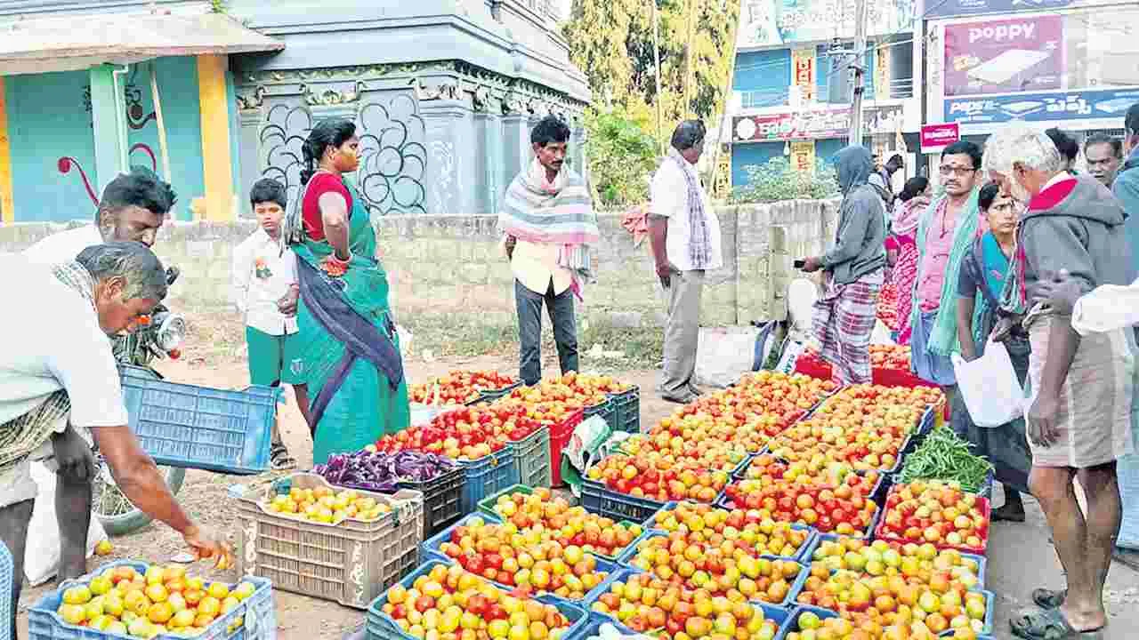 కృష్ణాదేవిపేట, జనవరి 18 (ఆంధ్రజ్యోతి): టమాటా ధర ఒక్కసారిగా పడిపోయింది. గత కొన్ని నెలలుగా ఆకాశాన్నంటిన టమాటా ధర ఇప్పుడు దిగజారిపోయింది. గత వారం కృష్ణాదేవిపేట మార్కెట్లో క్రేటు(30 కిలోలు) రూ.800 పలకగా, ఈ ఆదివారం రూ.330 నుంచి రూ.350 మధ్య అమ్మకాలు సాగాయి. గత ఏడాది నవంబరు, డిసెంబరు నెలల్లో ఇదే క్రేటు రూ.1000లకు పైబడి ధర పలికింది. ఆదివారం కృష్ణాదేవిపేట మార్కెట్కు కొయ్యూరు, గొలుగొండ మండలాల్లో గల ఏఎల్పురం, చోద్యం, గైరంపేట, లింగంపేట, పాడి, రత్నంపేట, కినపర్తి, వలసంపేట, భీమవరం, పి.మాకవరం, సీహెచ్ నాగాపురం, తదితర గ్రామాల రైతులు వందలాది కిలోల టమాటాను తెచ్చారు. అయితే సరైన ధర పలకకపోయినా వ్యాపారులకు విక్రయించారు. ధర రోజురోజుకూ తగ్గిపోవడంతో ఆవేదన వ్యక్తం చేశారు.