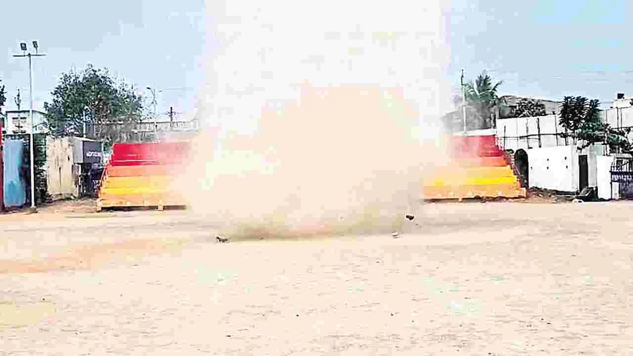 ఎన్టీఆర్ స్టేడియంలో 20 మీటర్ల ఎత్తున మినీ టోర్నెడోను తలపించిన దృశ్యం