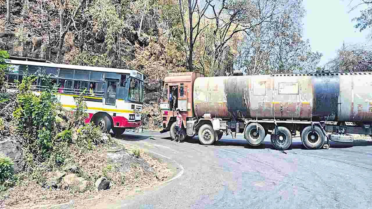 ట్యాంకర్ నిలిచిపోవడంతో గంటసేపు వాహనాల రాకపోకలకు అంతరాయం
