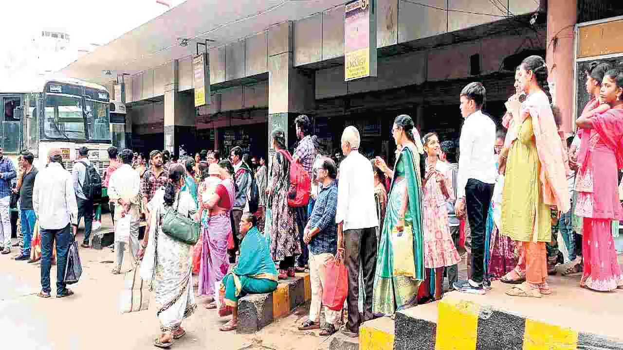 ఆర్టీసీ కాంప్లెక్స్లో బస్సుల కోసం అధిక సమయం నిరీక్షణ