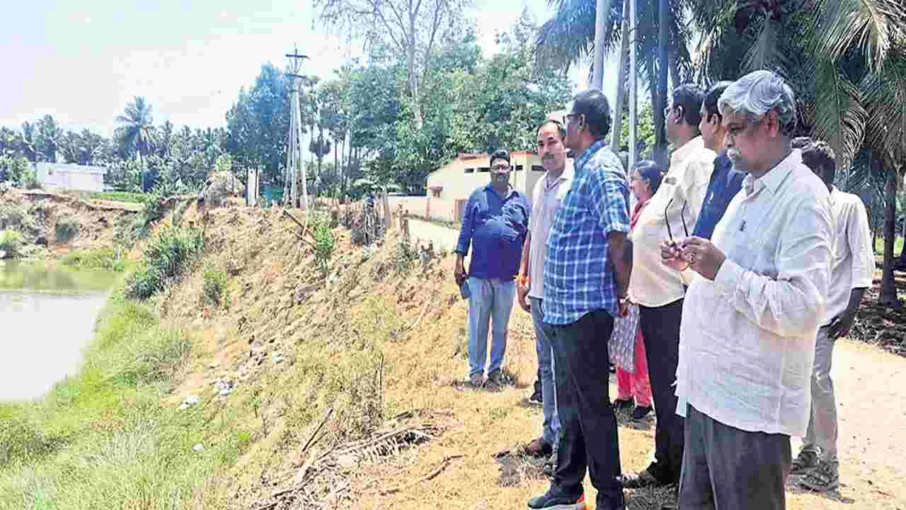 ఎస్.రాయవరం, ఏప్రిల్ 3 (ఆంధ్రజ్యోతి): మండలంలోని సోముదేవుపల్లి వద్ద కోతకు గురవుతున్న వరహా నది గట్టుకు రక్షణ గోడ నిర్మాణానికి ప్రభుత్వం రూ.9.95 కోట్లు మంజూరు చేసిందని, కొద్ది రోజుల్లో టెండర్ ప్రక్రియను పూర్తిచేసి, పనులు ప్రారంభిస్తామని జలవనరుల శాఖ చీఫ్ ఇంజనీర్ వై.శ్రీనివాసరావు తెలిపారు. శుక్రవారం ఆయన డీసీఈ ఆంజనేయులు, ఎస్ఈ అప్పలనాయుడు, ఈఈ వి.బాలసూర్యంతో కలిసి సోముదేవుపల్లి వద్ద వరహా నది గట్టును పరిశీలించారు. ఈ సందర్భంగా ఆయన మాట్లాడుతూ, మంజూరైన నిధులతో నది గట్టు కోతకు గురైన ప్రదేశం వద్ద రక్షణ గోడ నిర్మాణం, గ్యాప్ ఫిల్లింగ్, రెండు మదుములు, గ్రోయిన్ నిర్మాణం చేపడతామని, ఇంకా రెండు పంట కాలువల్లో పూడిక తీయిస్తామని చెప్పారు. ఆయన వెంట జలవనరుల శాఖ డీఈ ఎంవీ సురేశ్కుమార్, ఏఈ అమీనా భాను వున్నారు.