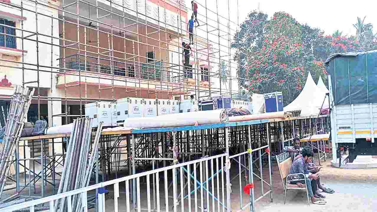 ఎన్టీఆర్ స్టేడియంలో సంగీత విభావరికి వేదిక నిర్మాణం