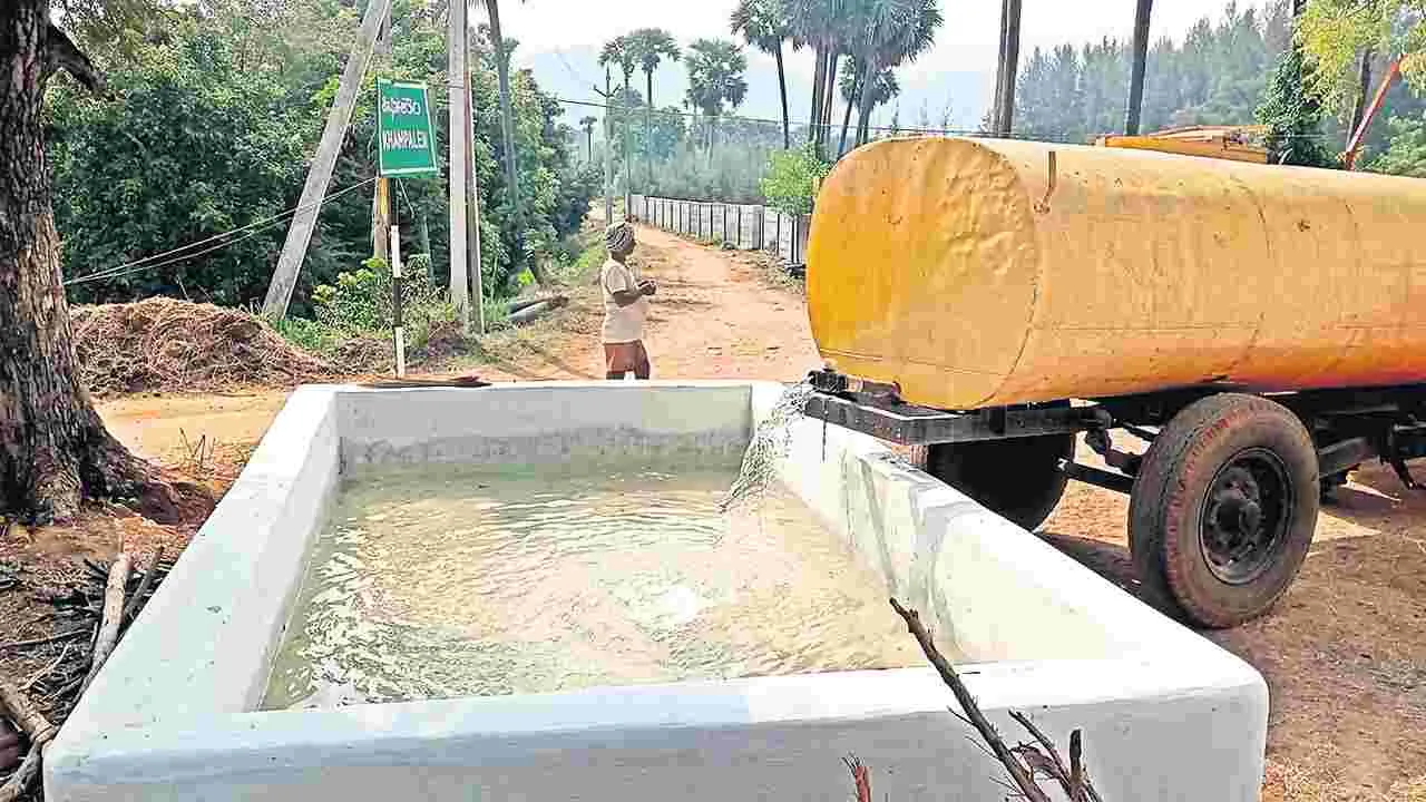 మాకవరపాలెం, ఏప్రిల్ 10 (ఆంధ్రజ్యోతి) మండలంలోని పలు గ్రామాల్లో పశువుల తాగునీటి కోసం ఏర్పాటు చేసిన తొట్టెల్లో పంచాయతీల కార్యదర్శులు నీటిని నింపారు. ‘తొట్లు సరే.. నీళ్లేవి?’ శీర్షికతో శుక్రవారం ‘ఆంధ్రజ్యోతి’లో ప్రచురితమైన వార్తకు అధికారులు స్పందించారు. కొన్నిచోట్ల సమీపంలో వున్న వ్యవసాయ బోర్లు నుంచి నీటిని నింపగా, మరికొన్నిచోట్ల ట్యాంకర్లతో నీటిని తెచ్చి తొట్టెల్లో పోశారు. మండలంలోని అన్ని పశువుల తొట్టెల్లో రోజూ నీటిని నింపాలని ఆర్డబ్ల్యూఎస్ అధికారులకు సూచించినట్టు ఎంపీడీఓ ఛాయసుధ తెలిపారు.