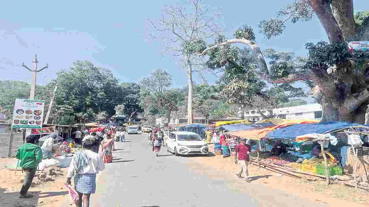 రోడ్డు లేని గ్రామాల గిరిజనులు తెచ్చిన సరుకులు మధ్యాహ్నంతో సరి