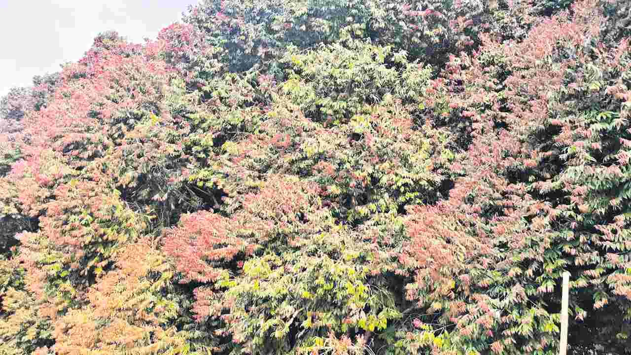 ఇప్పుడిప్పుడే రంగుమారుతున్న చెట్ల ఆకులు
